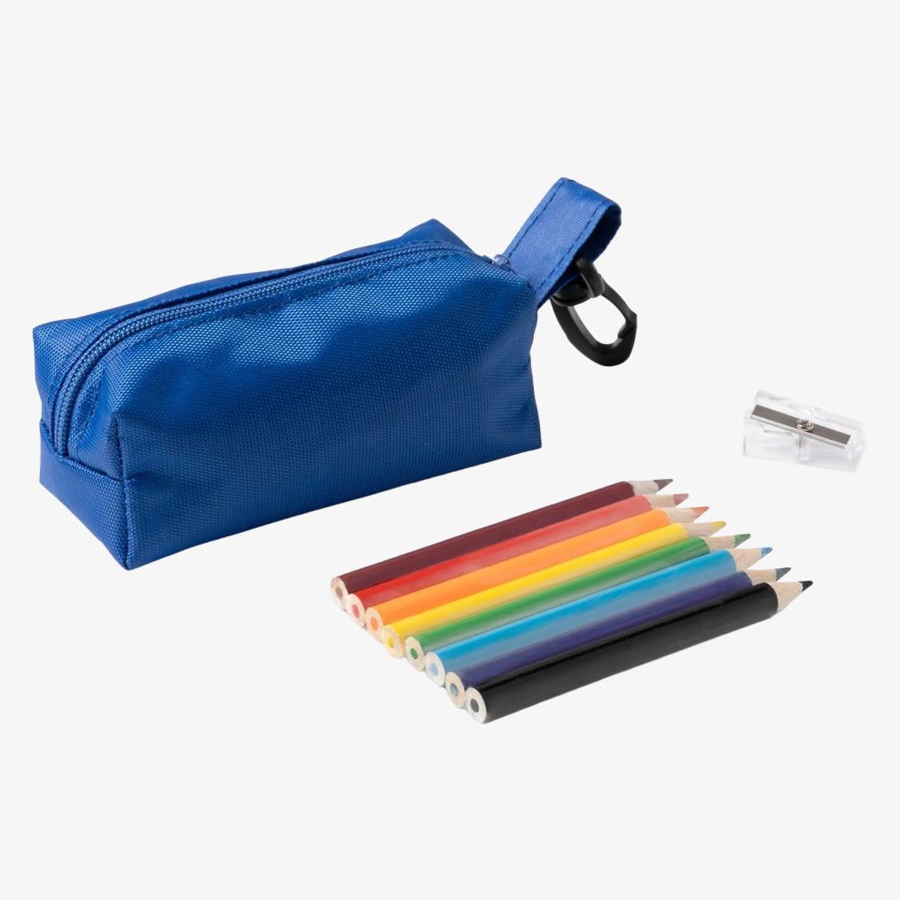 Piórnik MINTO wykonany z RPET do przechowywania kredek i temperówki z obrotowym karabińczykiem. Ułatwia przenoszenie i dostęp do kredek dzięki dopasowanemu zamkowi błyskawicznemu.