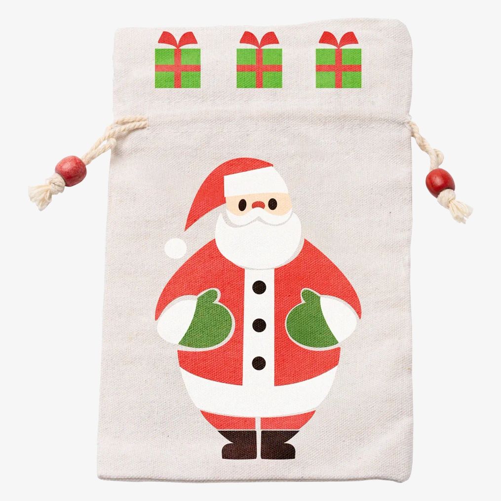 Torba prezentowa bawełniana z motywem Świętego Mikołaja jest przeznaczona do przechowywania małych przedmiotów. Nadaje się do wielokrotnego użytku, co ogranicza jednorazowe użycie i stanowi bardziej trwałą alternatywę. Jej wymiary 13 x 23 cm pozwalają na pomieszczenie różnych przedmiotów podczas świąt.