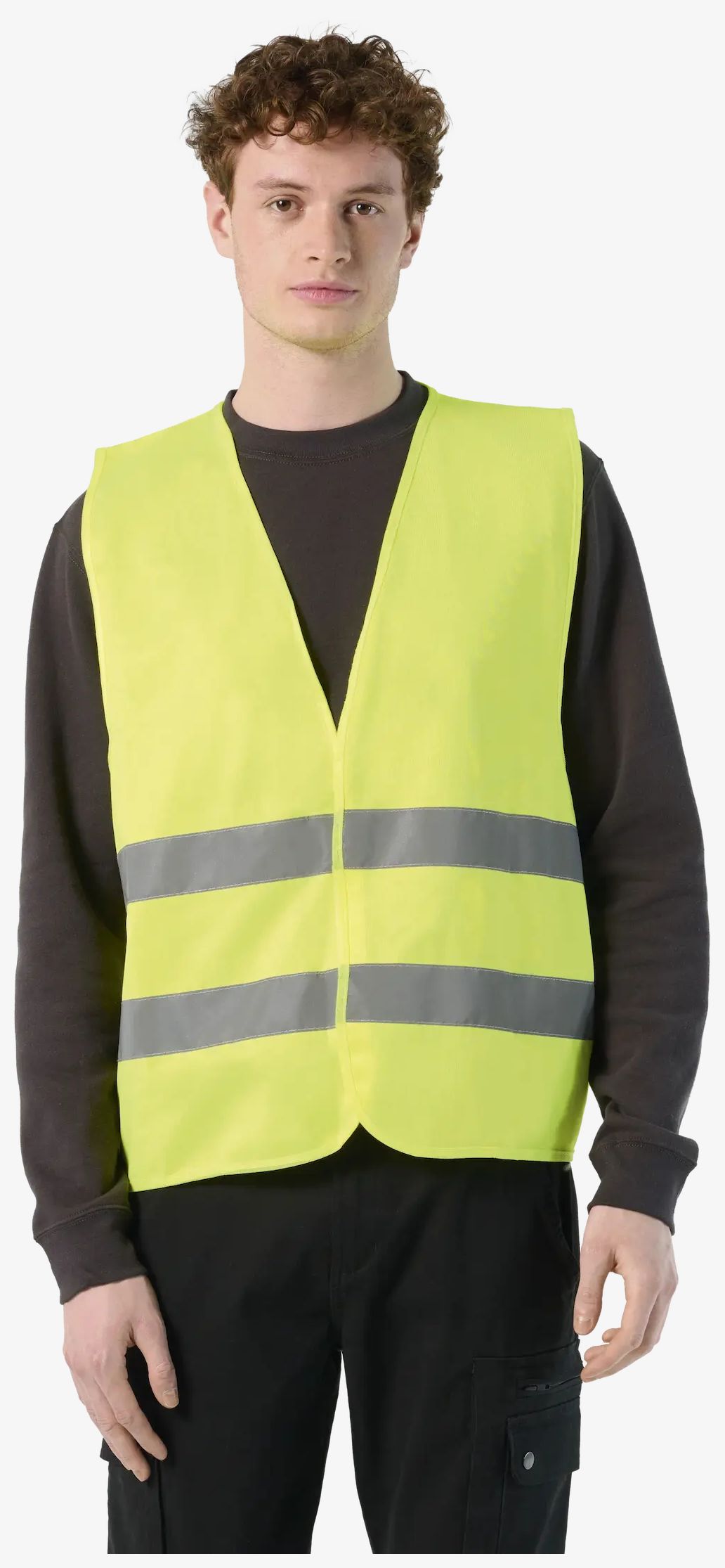 Kamizelka bezpieczeństwa unisex wyposażona w zapięcie na rzep oraz dwa poziome pasy odblaskowe. Rozmiar uniwersalny odpowiadający XL.