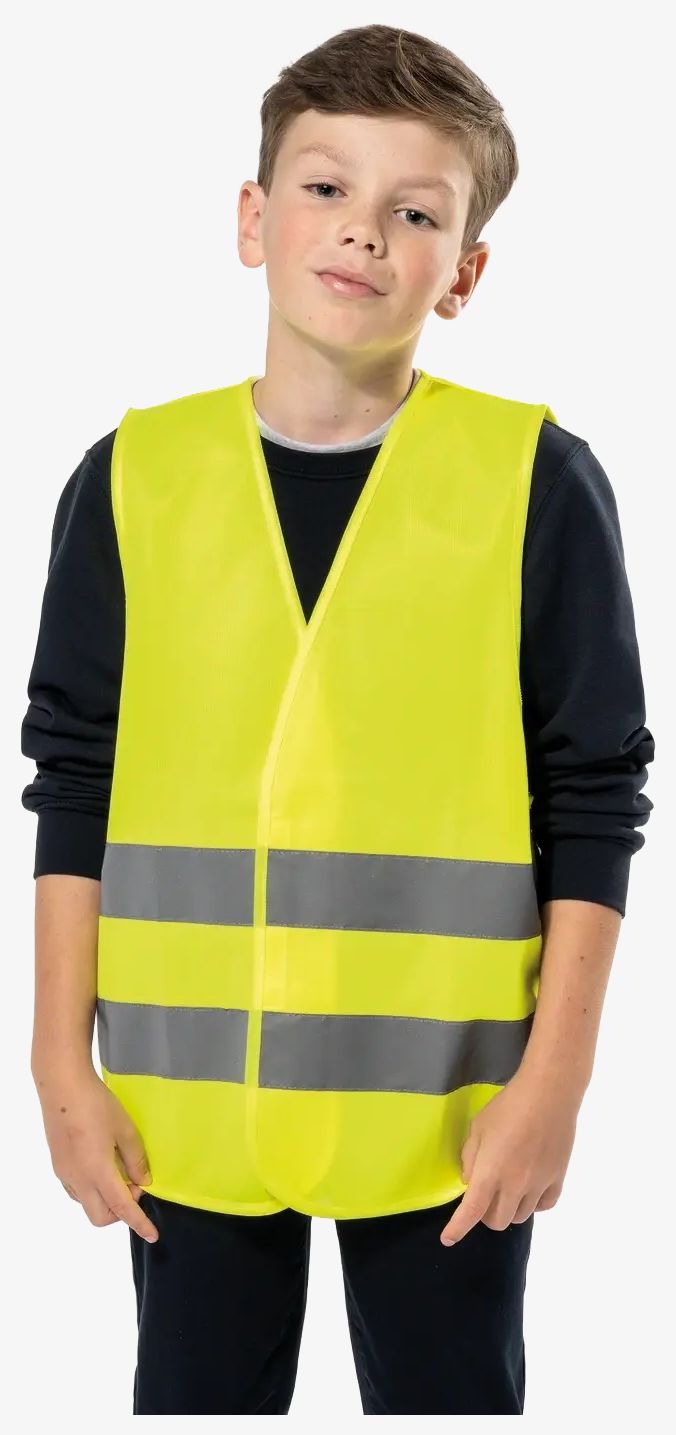 gilet visibilité enfant zaprojektowany z łatwym zapięciem na rzepy dla optymalnego dopasowania i luźnym krojem umożliwiającym noszenie na ubraniach. Wykonany z siateczki polickotowej z wykończeniem easy care.