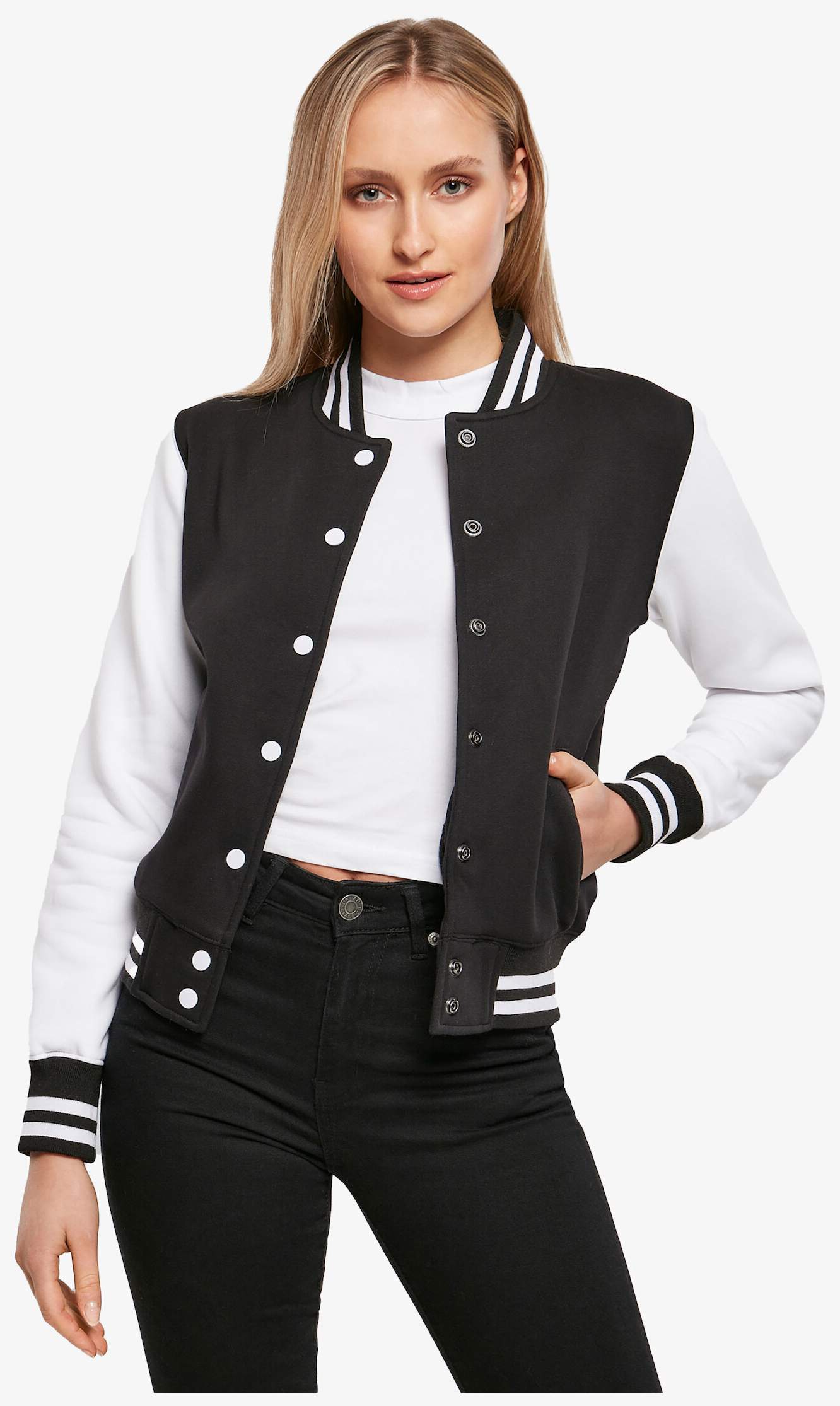 Kurtka teddy uniwersytecka zaprojektowana z miękkim wnętrzem dla większego komfortu. Posiada wszyte rękawy i kontrastowe zatrzaski. Kołnierz, mankiety i dół ozdobione są kontrastowymi paskami. Z przodu znajdują się dwie kieszenie.