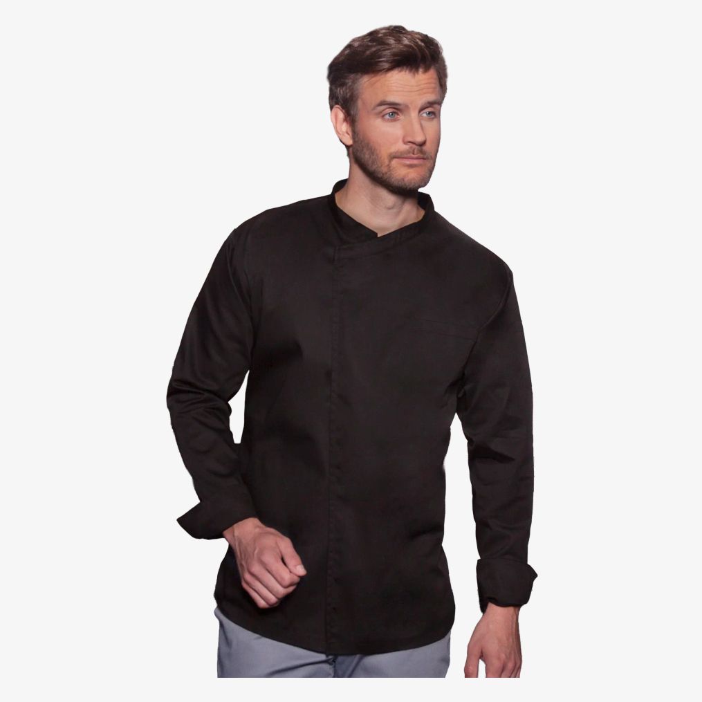 BJM4 - Long sleeve throw-over chef shirt basic - black