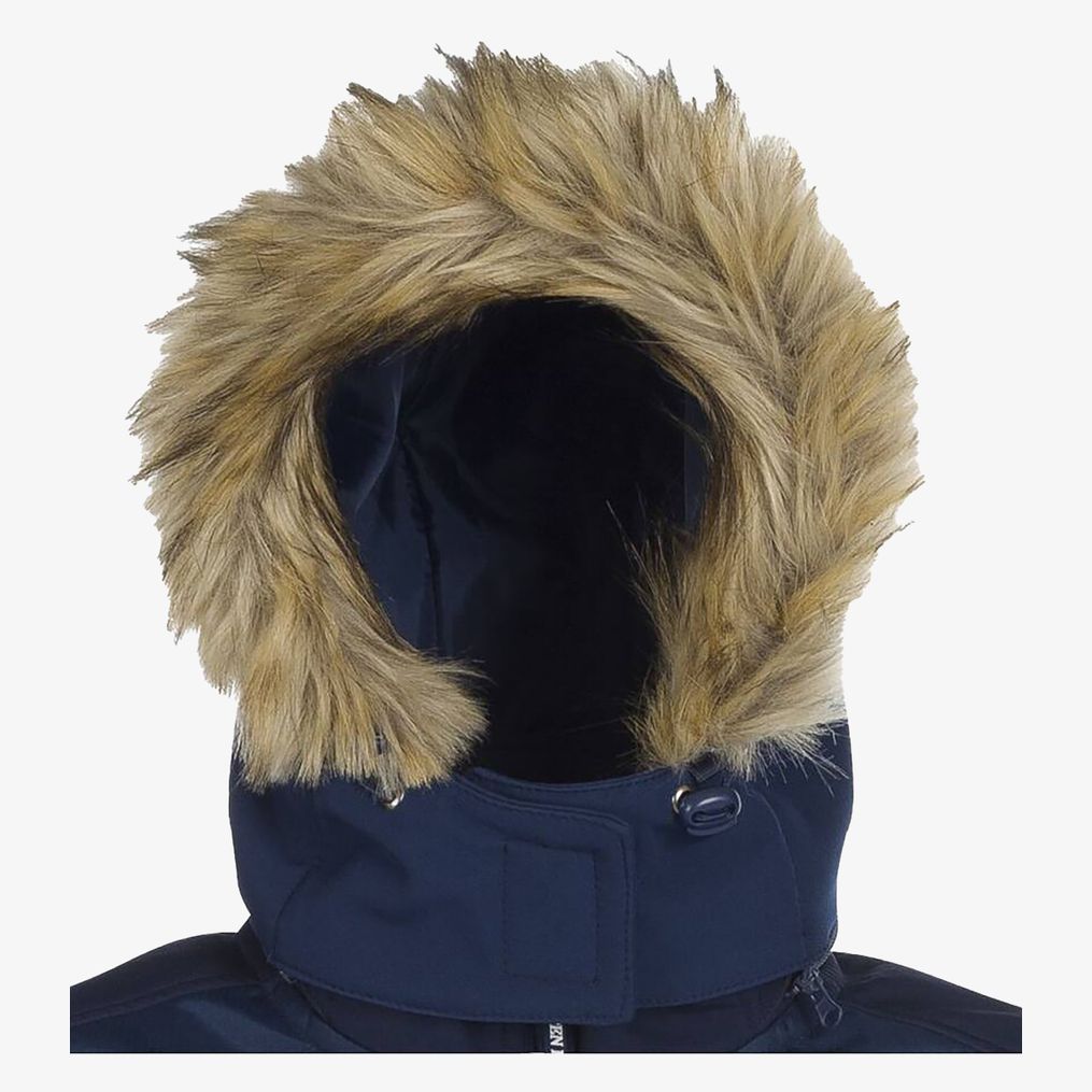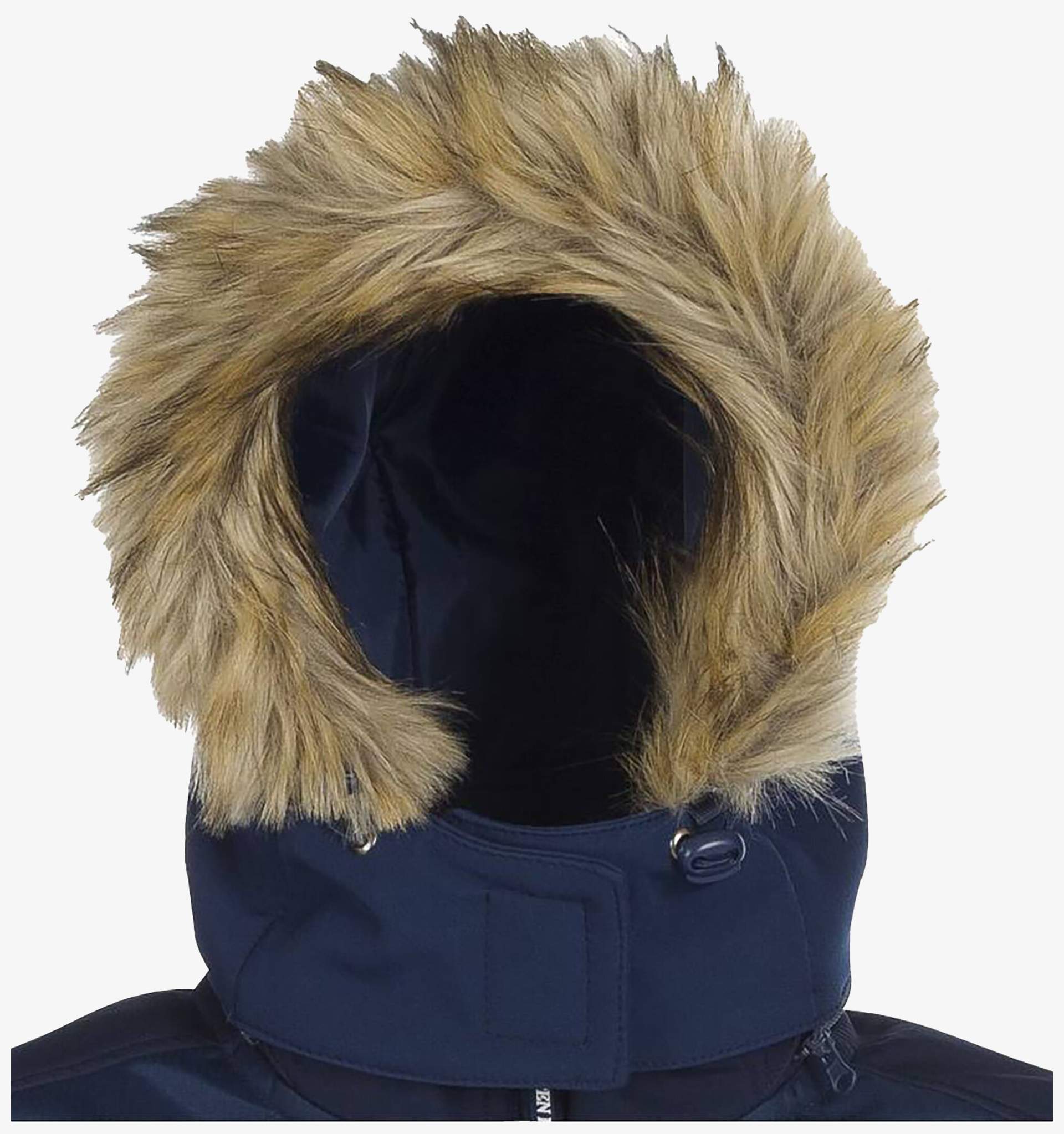 La capuche amovible en polyester s'adapte aux modèles pk335, pk778, pk774, pk779, pk781 et pk782. Elle comprend un cordon de serrage élastiqué avec stopper et un réglage de profondeur par bande auto-agrippante sur le dessus. L'habillage en fourrure est placé sur le haut de la capuche.