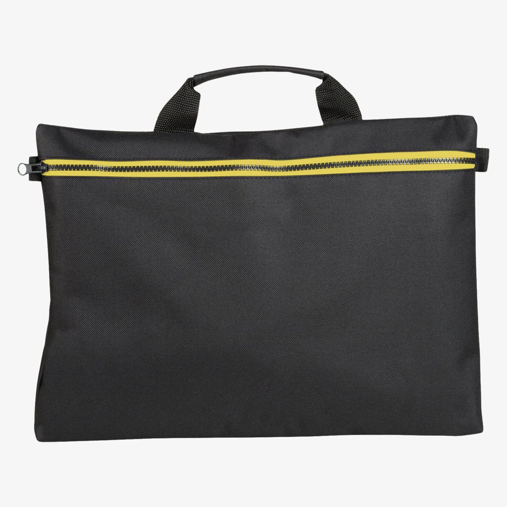 Le sacoche pour séminaire dispose d'une fermeture zippée contrastée offrant un accès sécurisé et pratique. Sa conception en polyester 600D enduction PVC assure une certaine résistance. La forme est adaptée au transport de documents professionnels avec un volume limité.