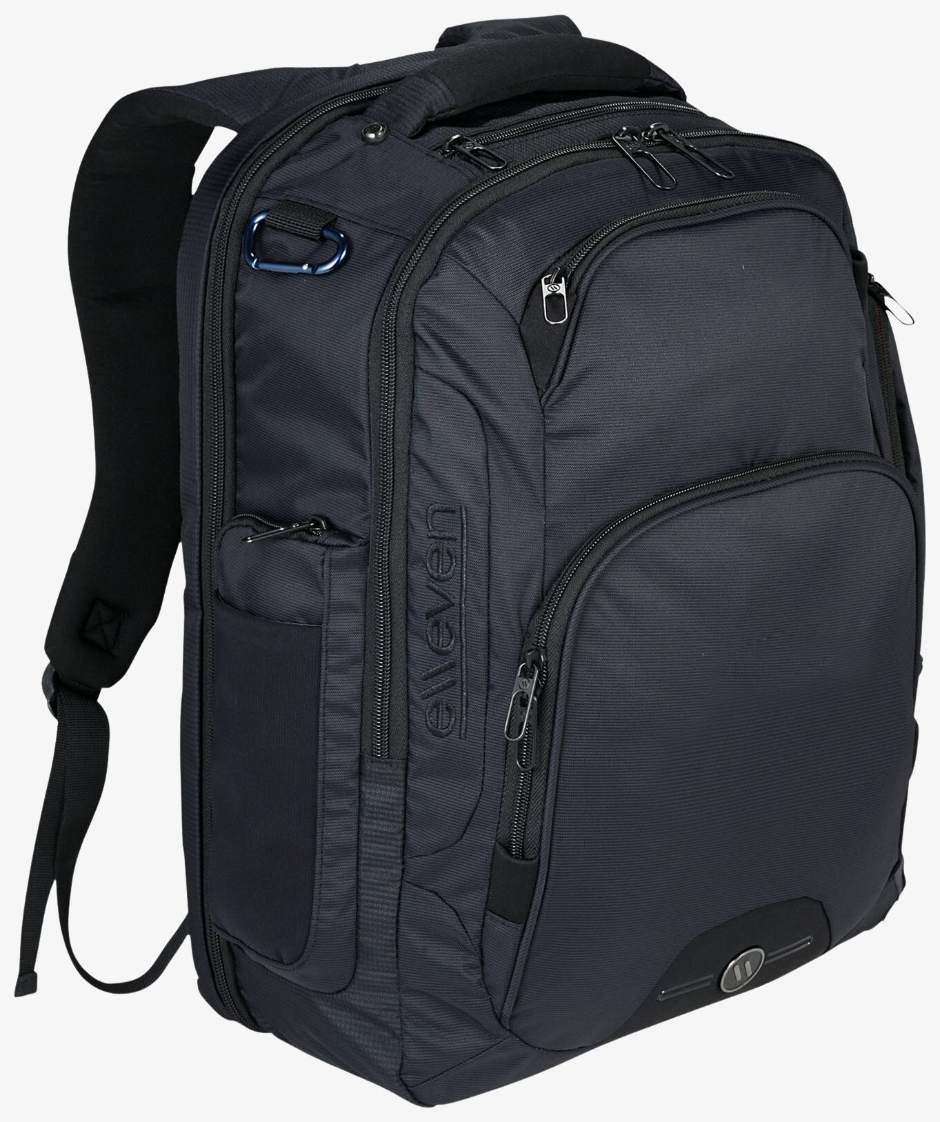 Sac à dos 17" Rutter. Sac à dos ordinateur 17" avec compartiment arrière matelassé pour ordinateur. Le compartiment principal comprend une séparation pour vos dossiers et une poche pour ranger une tablette. Ce sac à dos dispose d'une poche pour smartphone sur le dessus, d'une poche bloquant les émissions RFID sur le devant, de poches latérales zippées, de poches maille filet pour bouteille d'eau sur le côté , d'un passant pour trolley, d'une poche maille filet cachée pour votre téléphone ou carte d'identité. La poignée, les bretelles arrières matelassées et ajustables sont en néoprène. Nylon 420D.