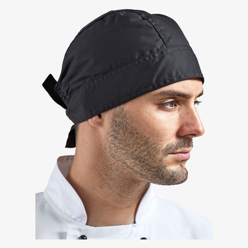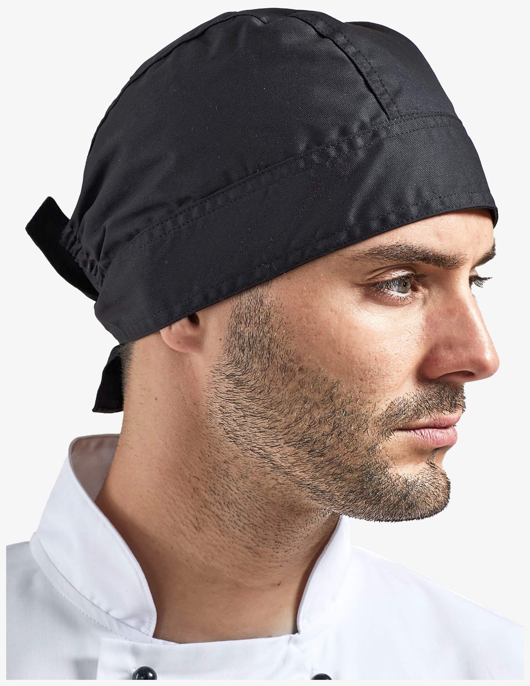 Le zandana cuisine est un couvre-chef conçu pour un usage en cuisine et restauration. Il comprend deux liens à l'arrière facilitant le réglage pour un port agréable. Composition 65% polyester, 35% coton.