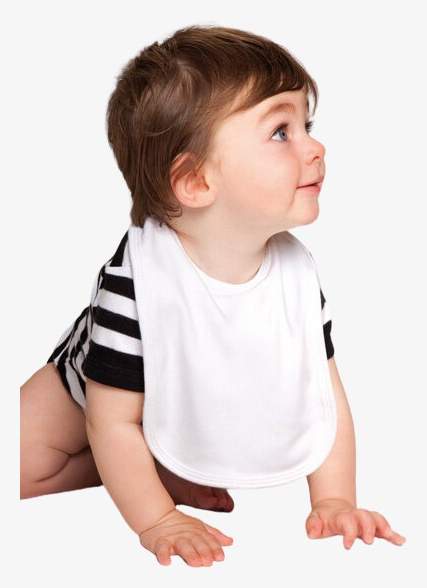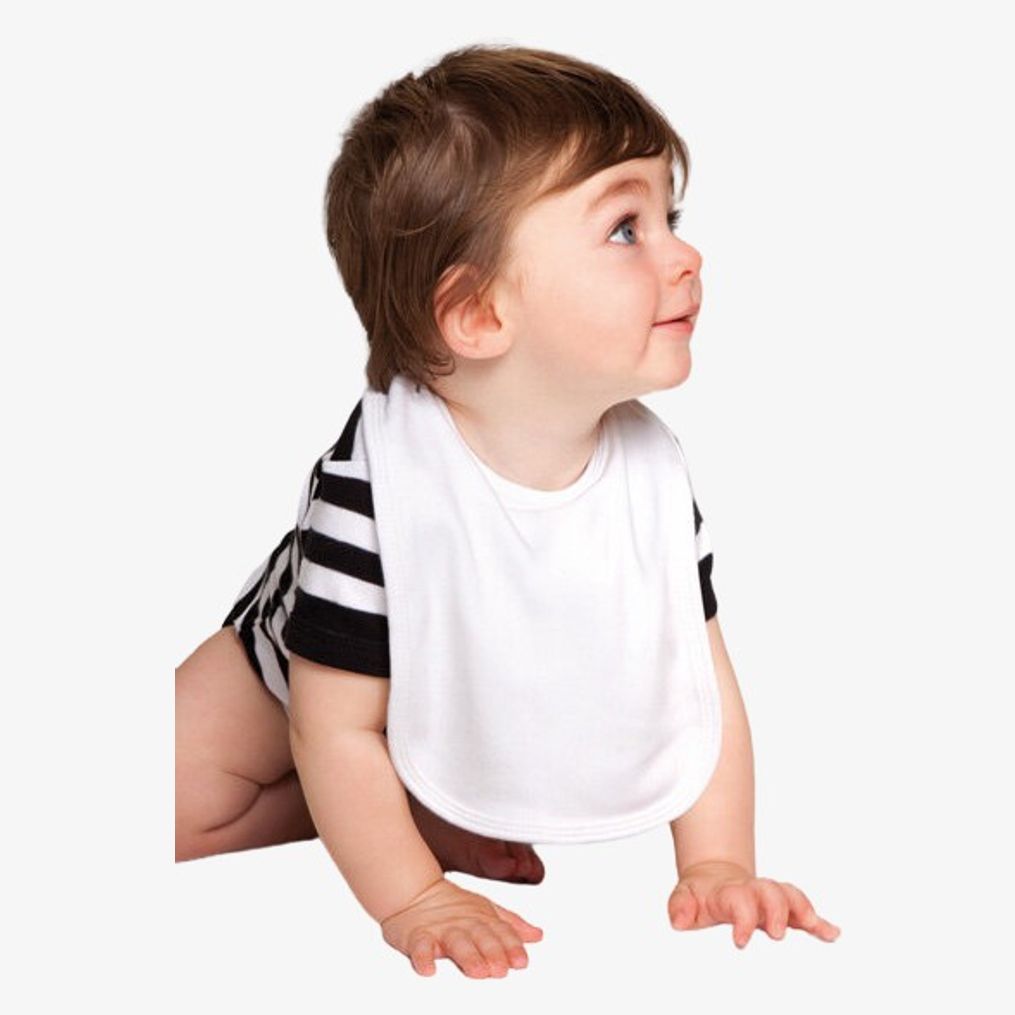 Le Baby Bib bavoir bz12 en coton ringspun, doublé, avec biais sur les côtés et fermeture auto-aggripante au dos. Conçu pour limiter les salissures lors des repas.