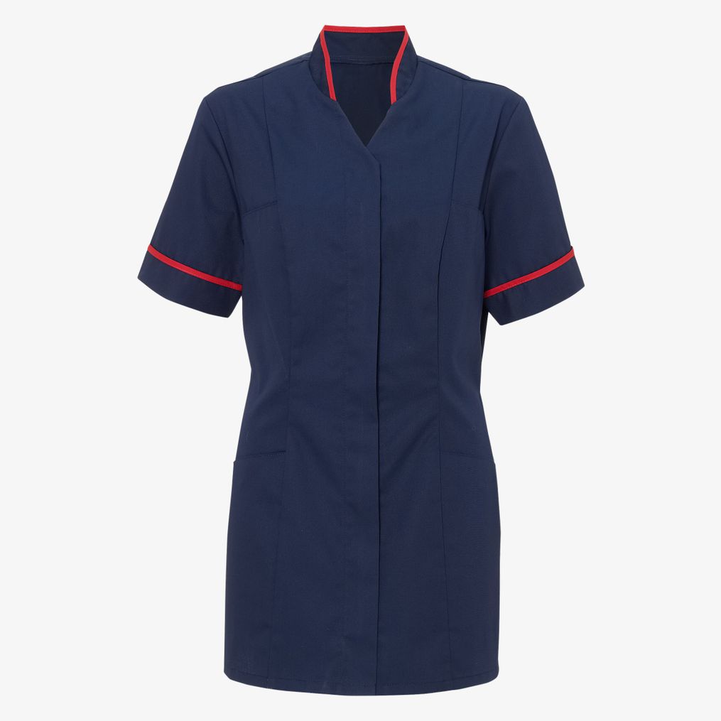 Cette tunique de la marque Alexandra est un atout parfait dans les domaines professionnels de la santé et les cabinets de soins. Confectionnée de manière experte avec un col mandarin, cette tunique est dotée d'une fermeture éclair dissimulée sur le devant et de deux poches sur les hanches pour plus de commodité. Le tissu est confortable et durable, tandis que les passepoils contrastés au niveau du col et des manches ajoutent une touche de style élégant. Les fentes latérales et le dos à double action permettent de bouger librement tout au long de la journée. Composition : 67% polyester 33% coton. Grammage : 195g/m².