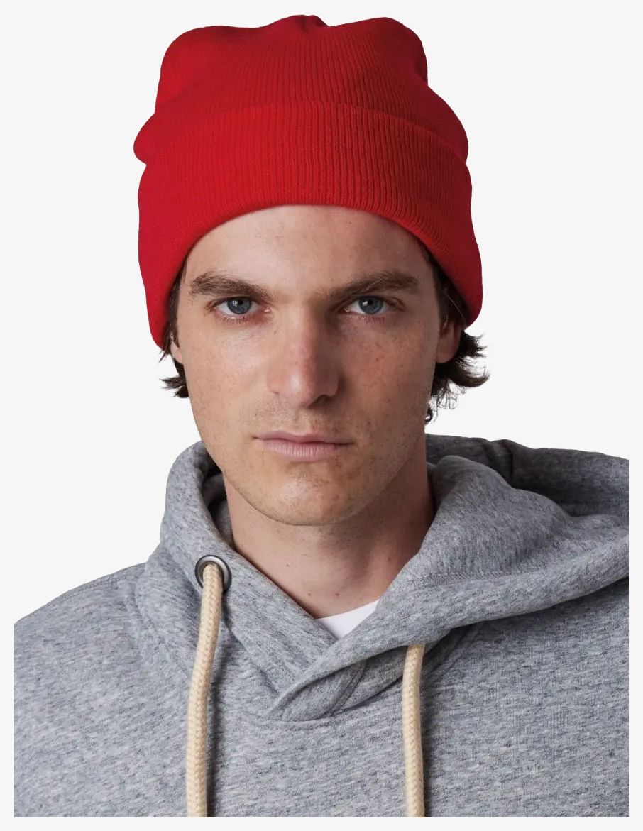 Le bonnet recyclé avec revers tricoté combine douceur et résistance tout en intégrant des fibres recyclées dans sa fabrication. L'étiquette est détachable pour faciliter son usage.