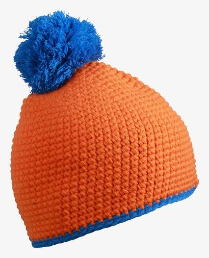 mb7964 - Pompon Hat with Contrast Stripe - blue/white