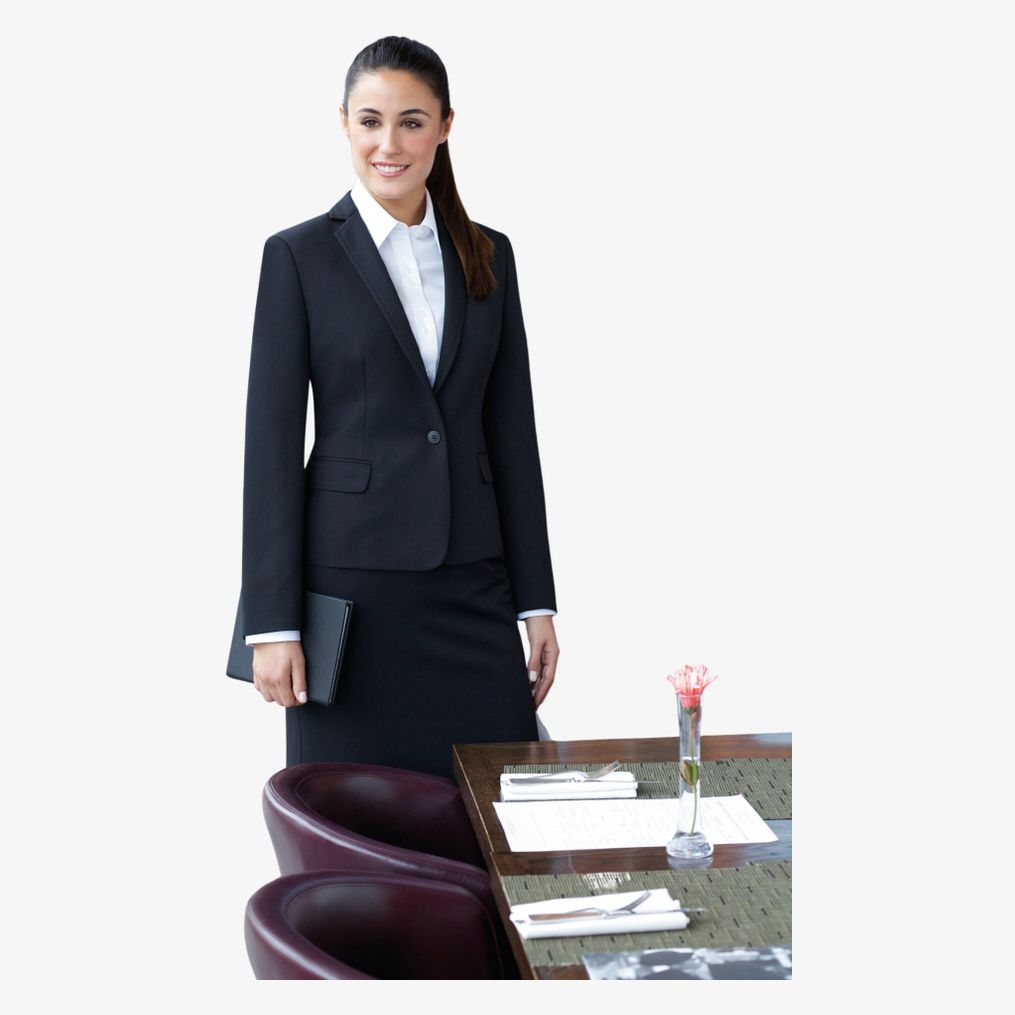Veste courte à boutonnage simple. Revers avec details de couture. Lavable en machine à 40°C ou à sec. R= Regular L=Long. Composition: 100% Polyester. Grammage : 335g/m²