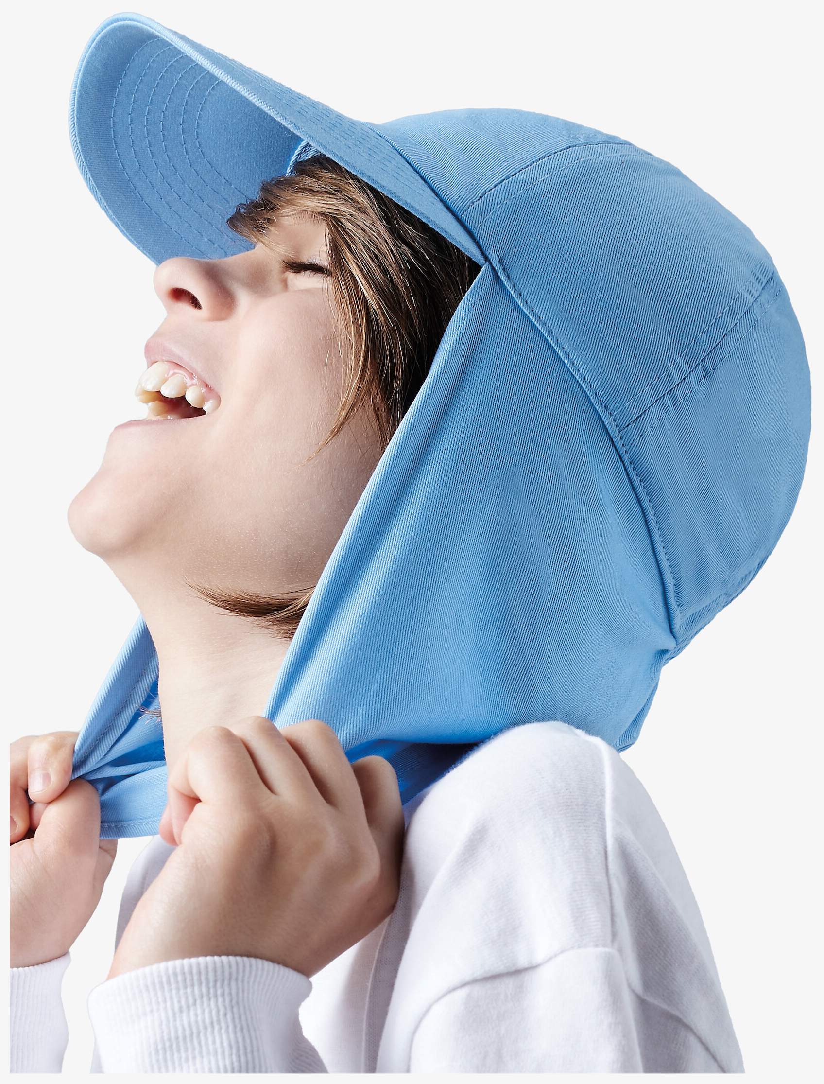 La casquette style légionnaire enfant est composée de 100% coton sergé. Elle comprend une protection pliable des oreilles et du cou, une visière précourbée et un ajustement taille élastiqué. Le bouton est sécurisé pour les enfants et la surface avant est centrée sans couture.