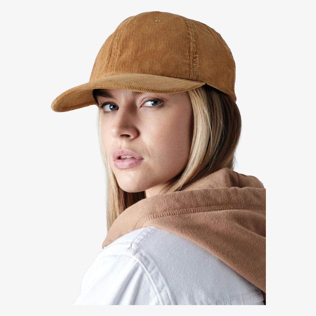 La casquette velours côtelé Heritage est conçue avec une couronne souple non structurée et un bandeau absorbant en coton sergé. Elle dispose de six panneaux, d'une taille unique ajustable par une bande tissu avec boucle argentée et œillet, ainsi que d'une étiquette détachable.