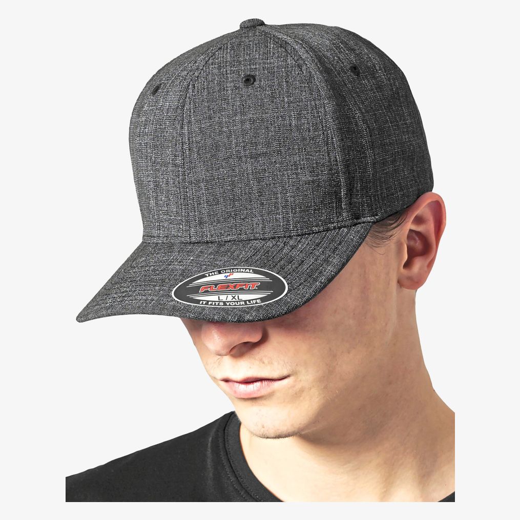 La casquette chinée associe une visière incurvée et une partie avant renforcée. Son tissu mélangé présente une structure fine.