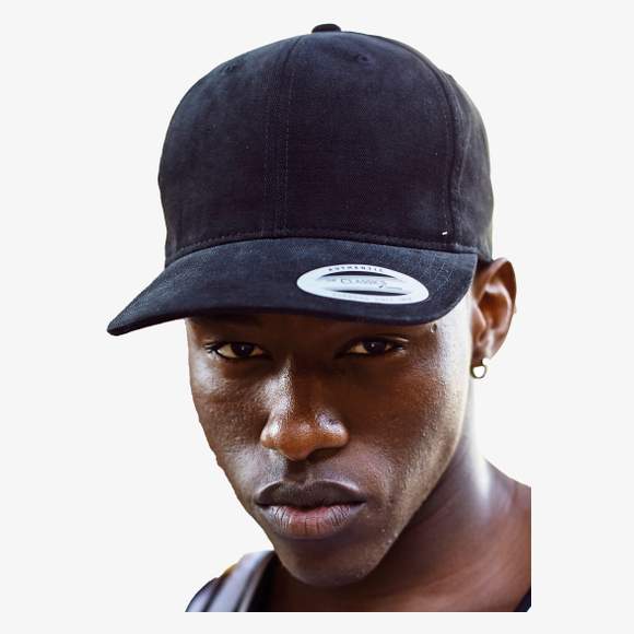 La casquette mi-profil en coton brossé comprend une partie avant légèrement rigide et une fermeture réglable par bande auto-agrippante sous-visière assortie. Elle est composée de 6 panneaux avec œillets pour une aération adaptée, et une visière comportant huit rangées de coutures.
