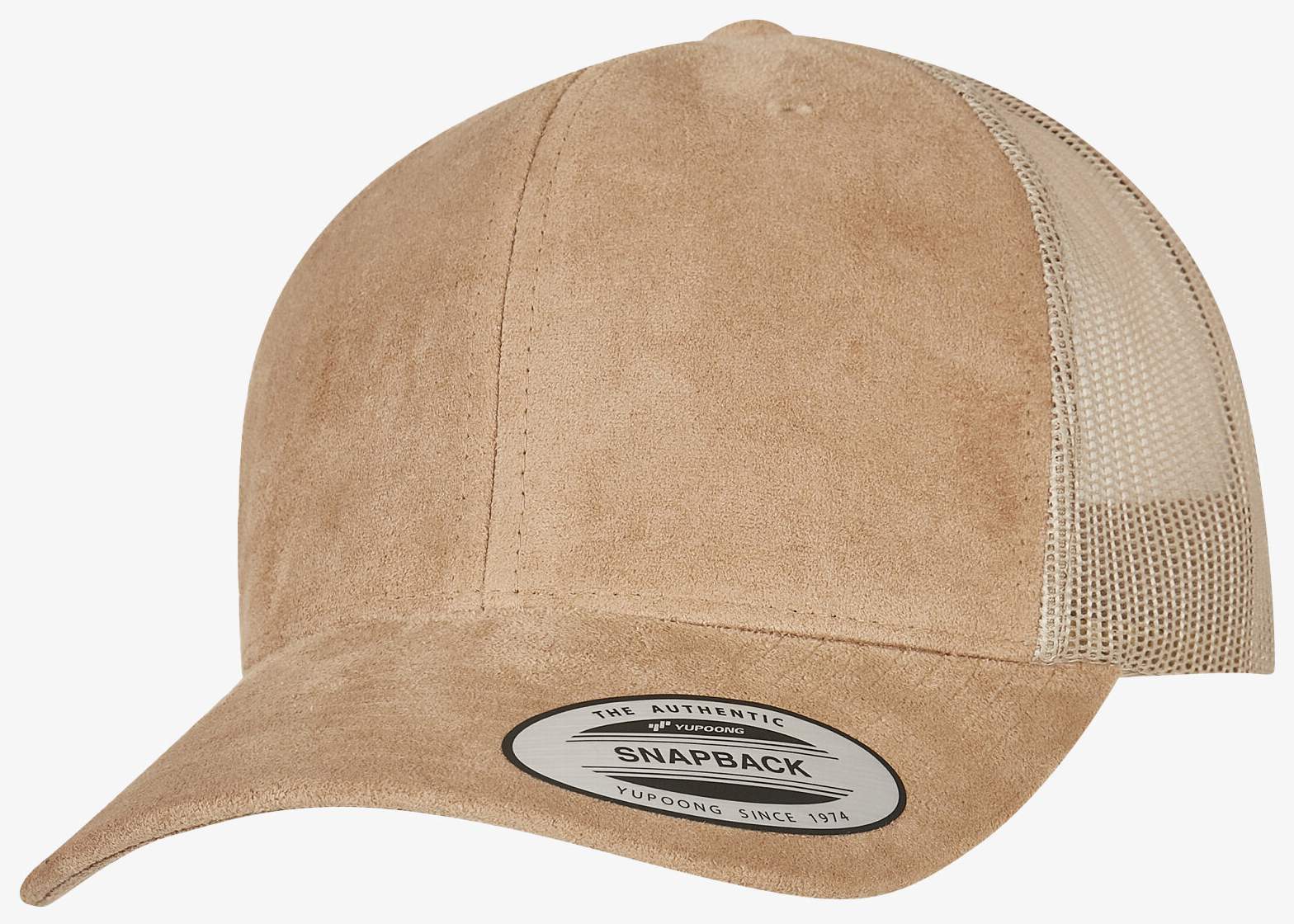 Le Trucker cap Suède est une casquette 6 panneaux avec visière pré-courbée, panneaux avant imitation daim et panneaux arrière filet. La fermeture réglable permet un ajustement simple.