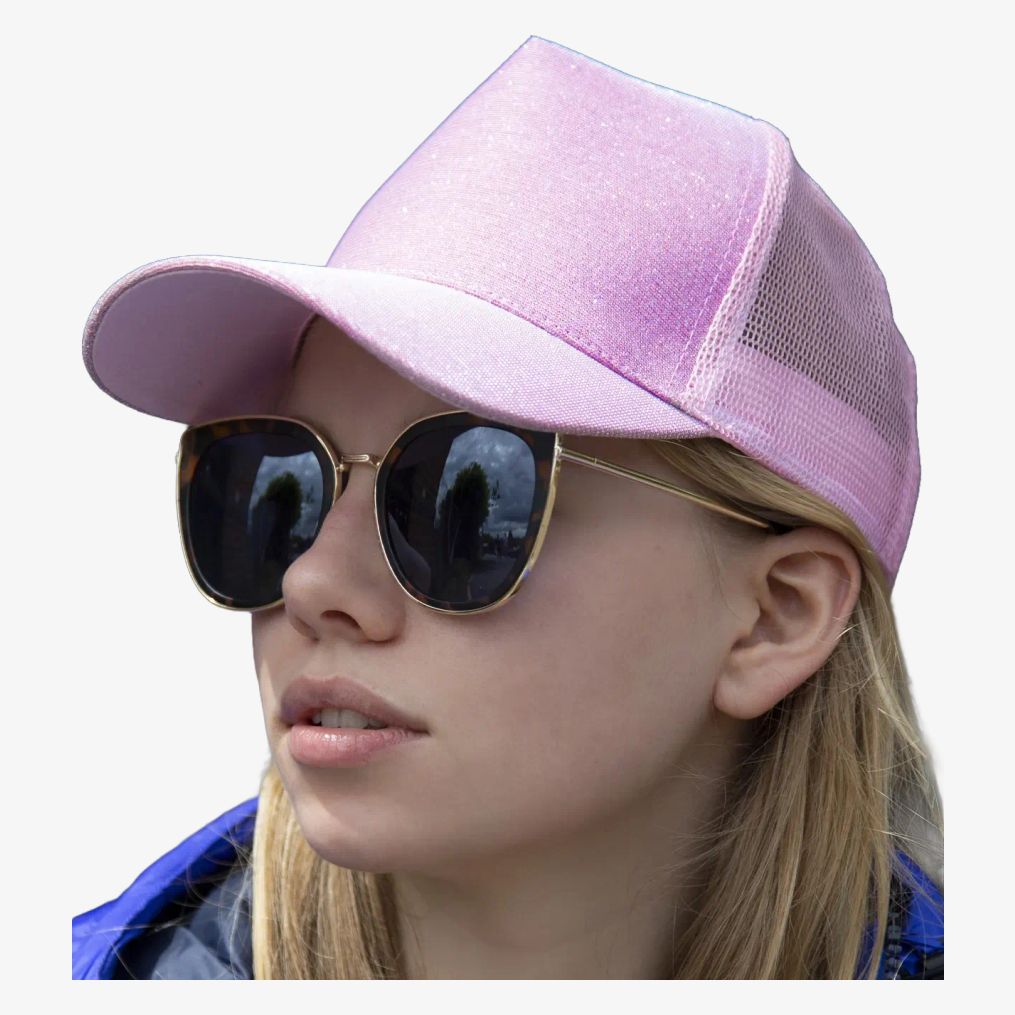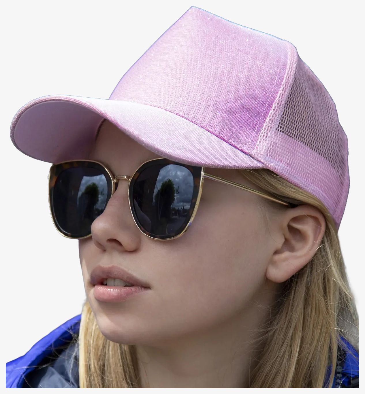 La York Sparkle cap est une casquette à 5 pans avec 4 pans filet et 1 pan avant matelassé pailleté. Sa visière courbée et son réglage par bande auto-agrippante permettent un ajustement simple pour un tour de tête de 58 cm.