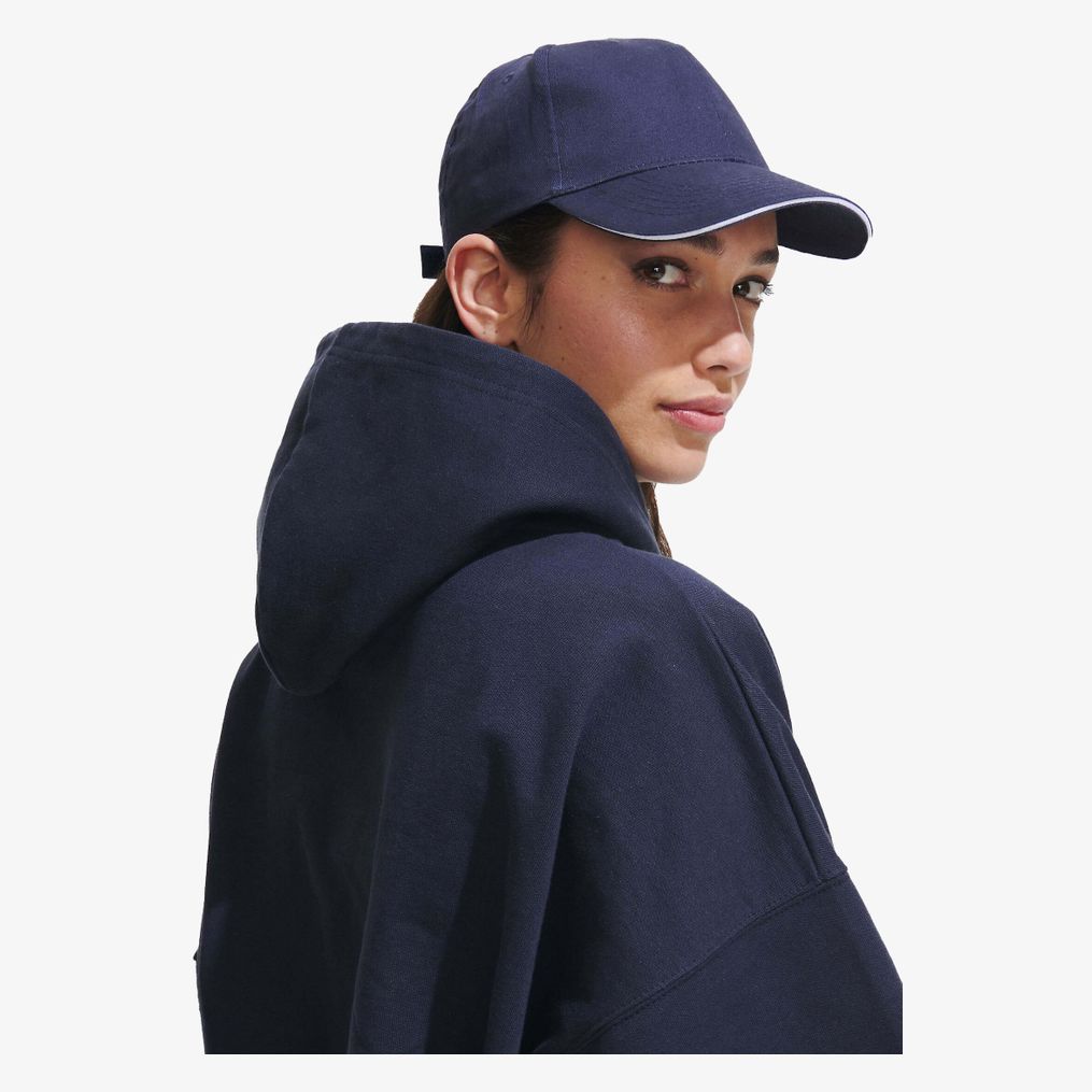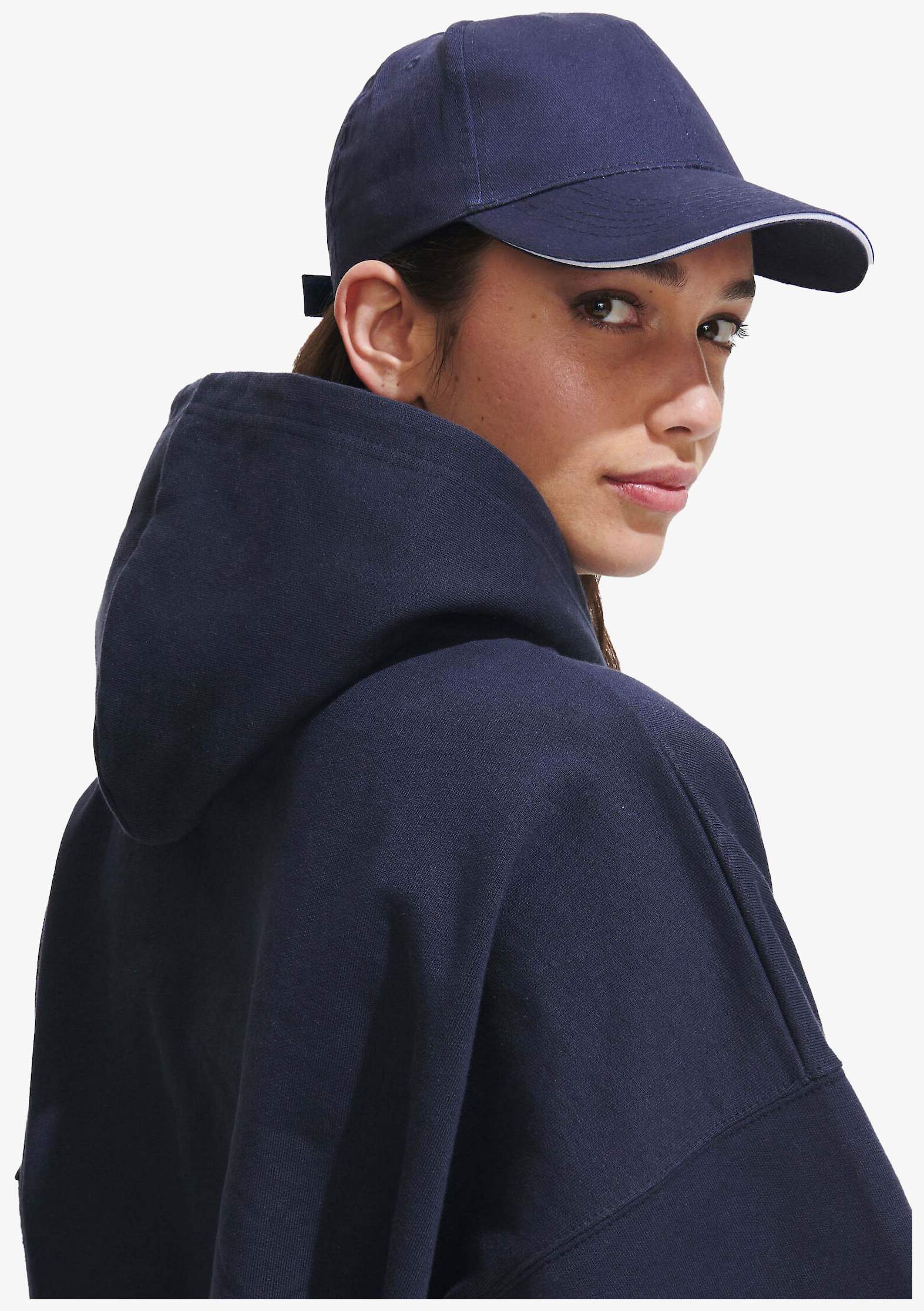 La casquette 6 panneaux dispose d'une visière préformée avec option sandwich et de 6 œillets brodés pour une ventilation naturelle. La fermeture arrière est assurée par une bande auto-agrippante. Le tissu est un coton brossé léger.