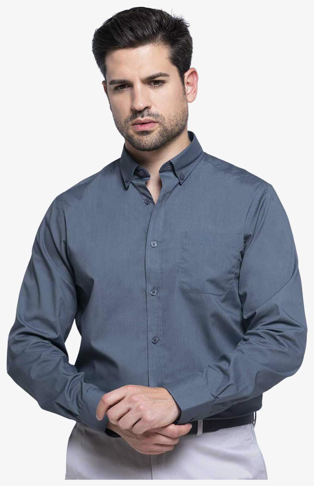 Chemise Popeline homme. Manches longues. Col boutonné. Poche côté cœur. Boutons ton sur ton. Composition : 65% polyester/35% coton