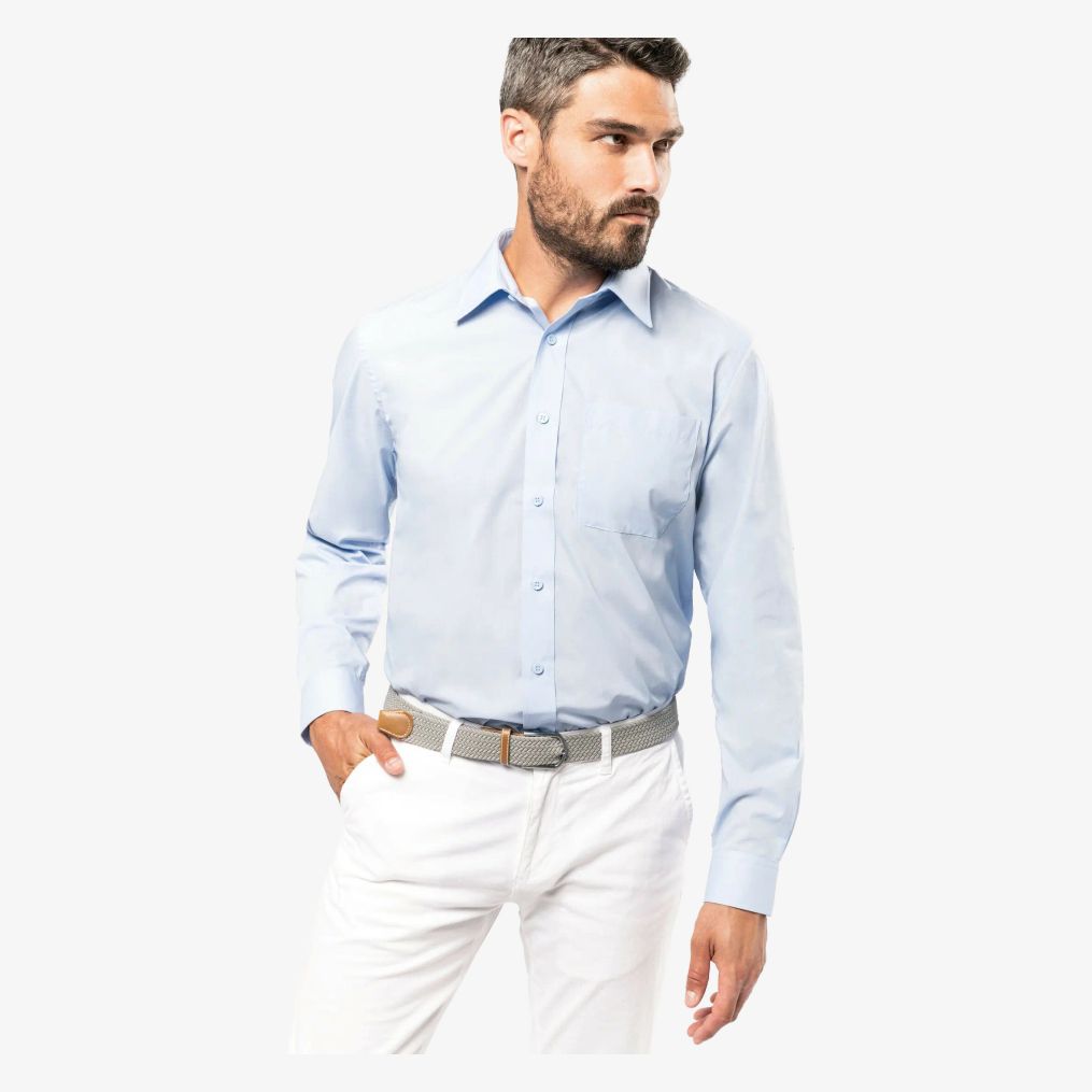 La Jofrey - Chemise manches longues en popeline polycoton convient à un usage quotidien. Col baleiné, boutons ton sur ton, poche poitrine gauche et poignets réglables avec patte boutonnée.