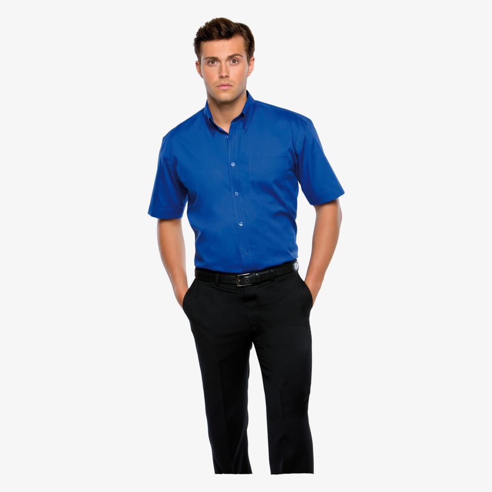 Le Corporate Oxford Shirt chemise kk109 en 85 % coton et 15 % polyester, avec col boutonné, poche poitrine, plis au dos et ourlet arrondi. Boutons nacrés sur couleurs claires et boutons assortis sur couleurs foncées.