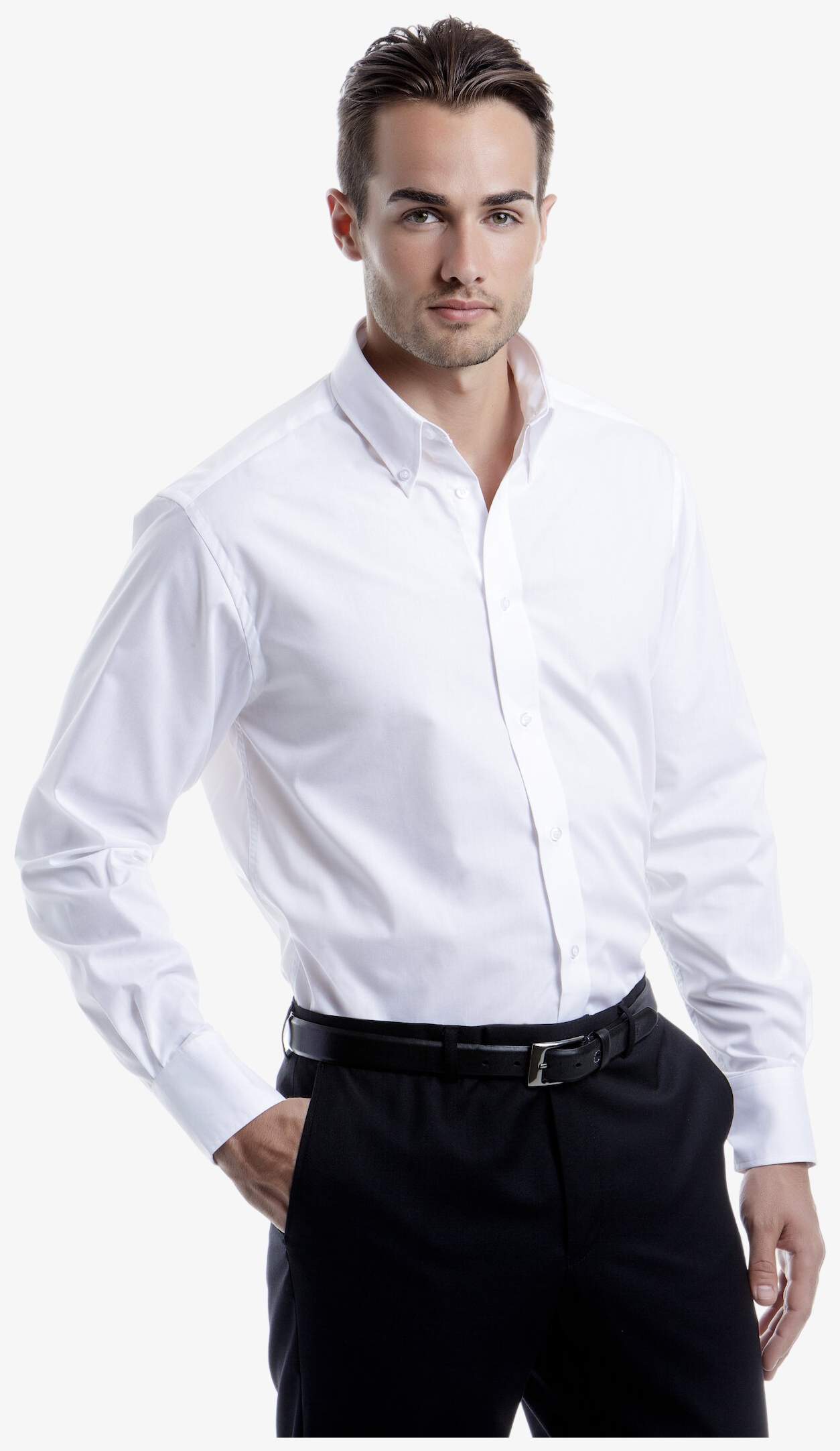 La City Business Shirt LS est une chemise à manches longues en coton, avec col à pointes boutonnées, empiècement au dos et base arrondie. Coutures simples aux emmanchures et coutures 2 points aux manches et côtés. Deux boutons de réserve.