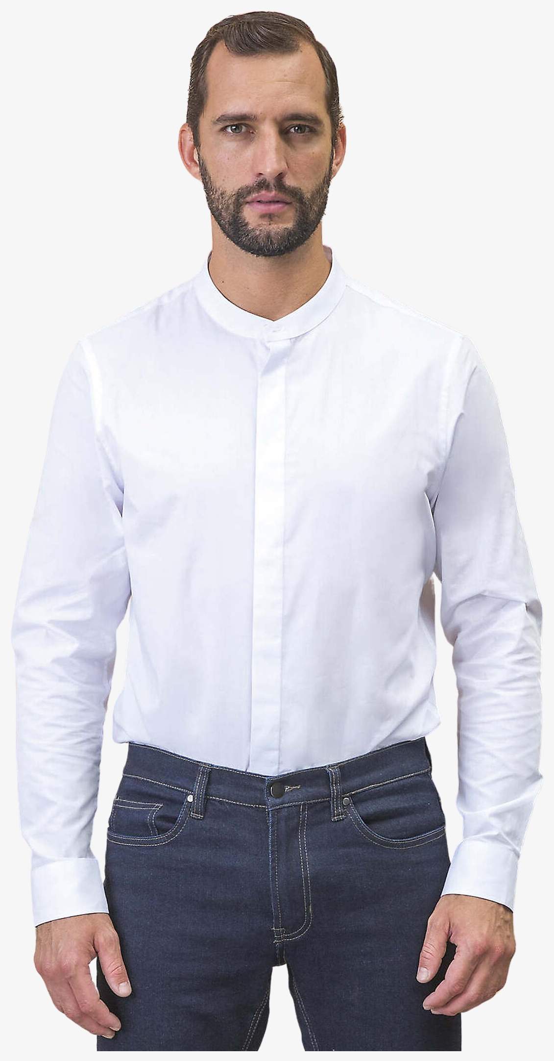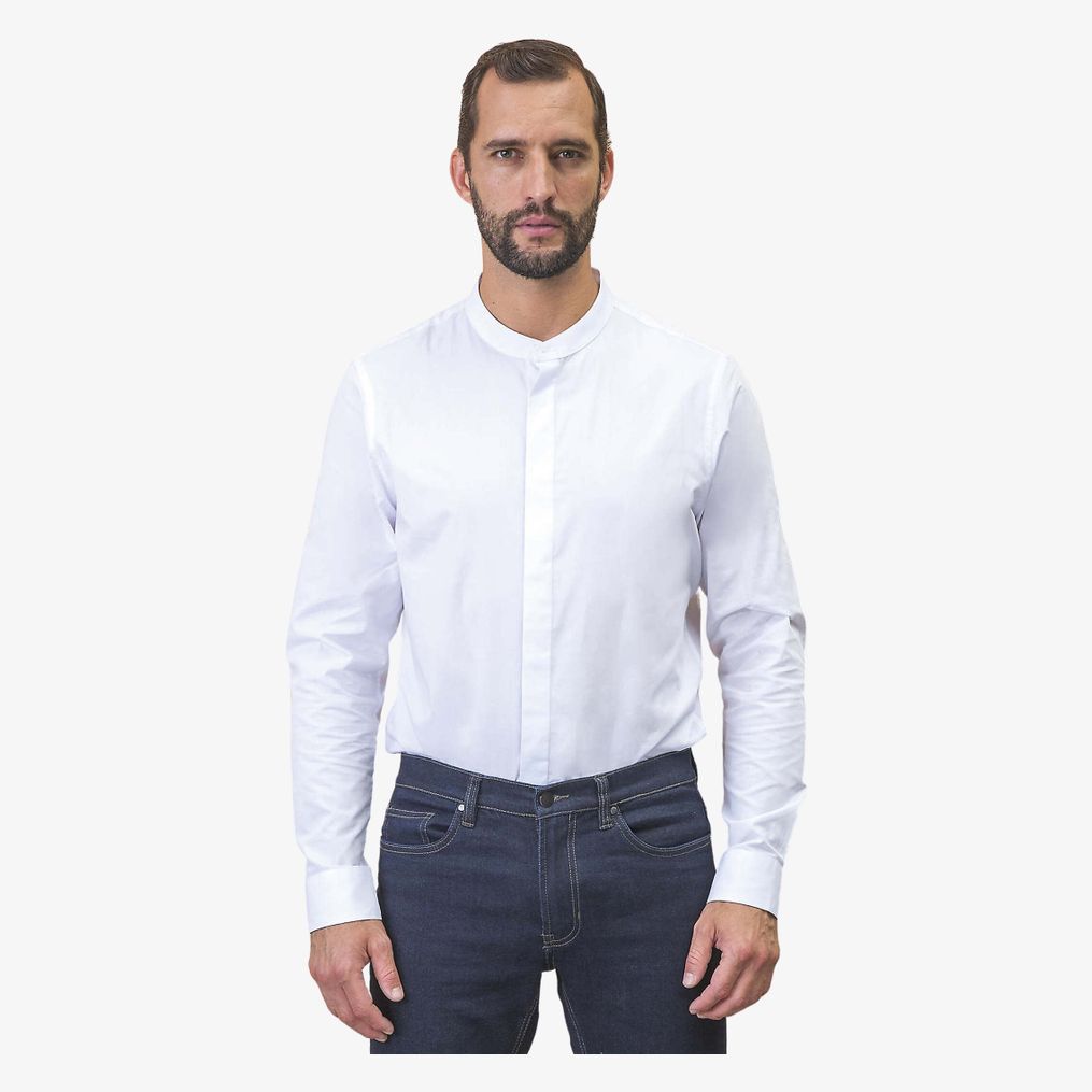 La chemise col Mao à manches longues pour homme combine tradition et modernité avec un style sobre. Elle est conçue en popeline avec patte de boutonnage cachée pour une finition discrète.