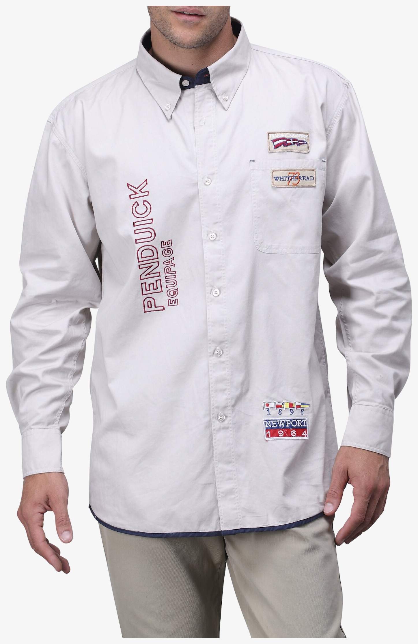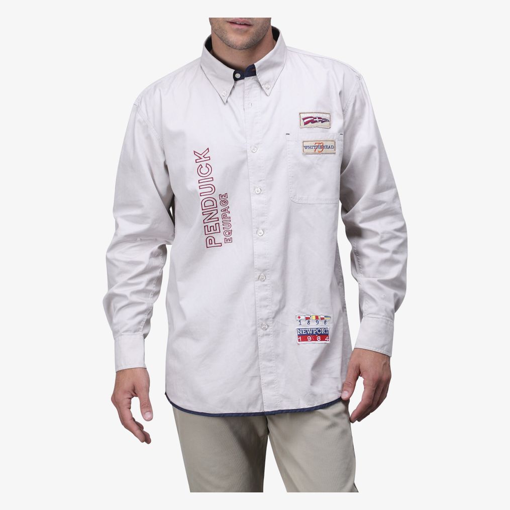 La Vintage chemise homme en coton fil à fil mercerisé convient à un usage quotidien. Manches longues, poche poitrine et intérieur de col contrasté. Présence de motifs en écussons sur le devant, les manches et le dos.