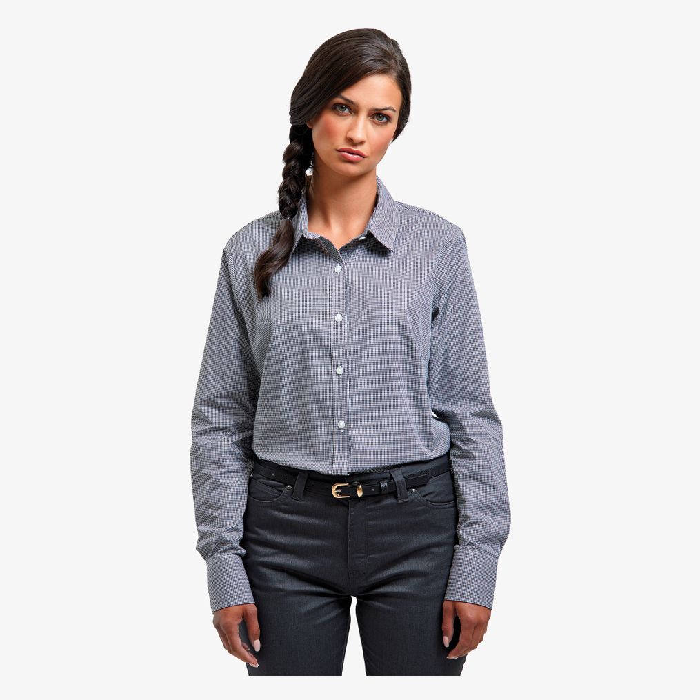 PR320 - Chemise à micro-carreaux vichy et manches longues pour femme Premier
