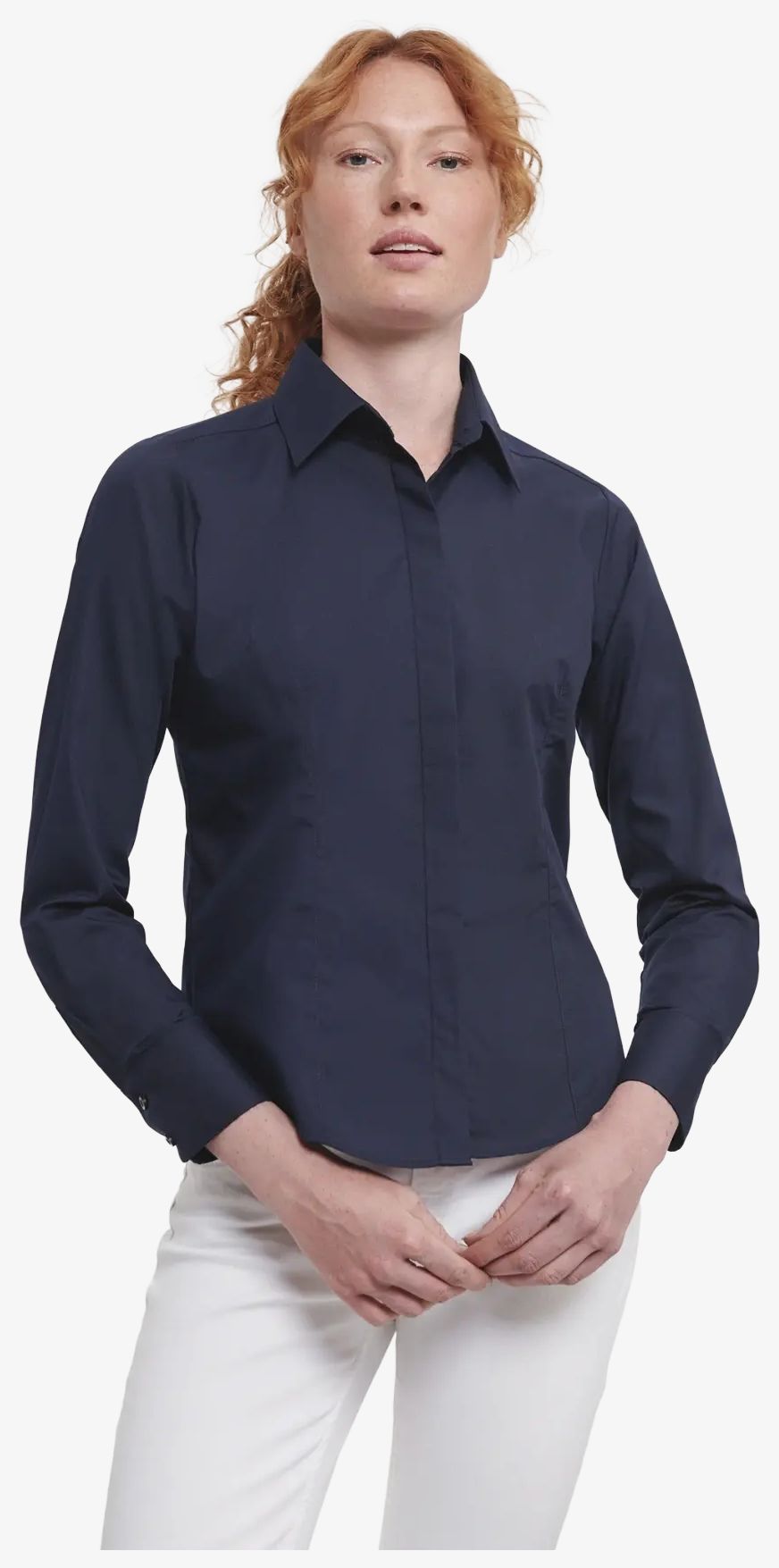 0R924F0 - Chemise en Popeline Polyester Coton cintrée manches longues femme Russell Athletic