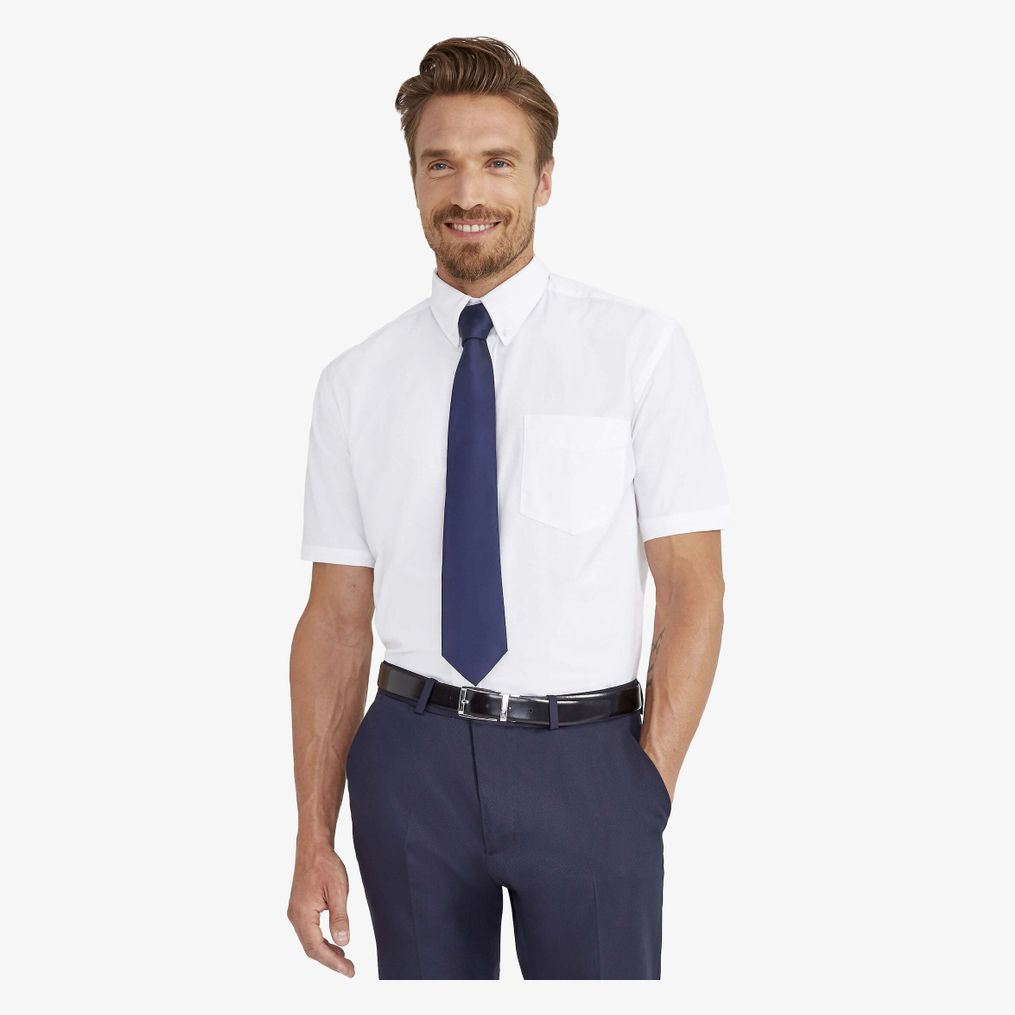 La Brisbane chemise homme Oxford manches courtes convient au port quotidien et au travail, avec col à 2 boutons, poche poitrine et deux plis au dos.