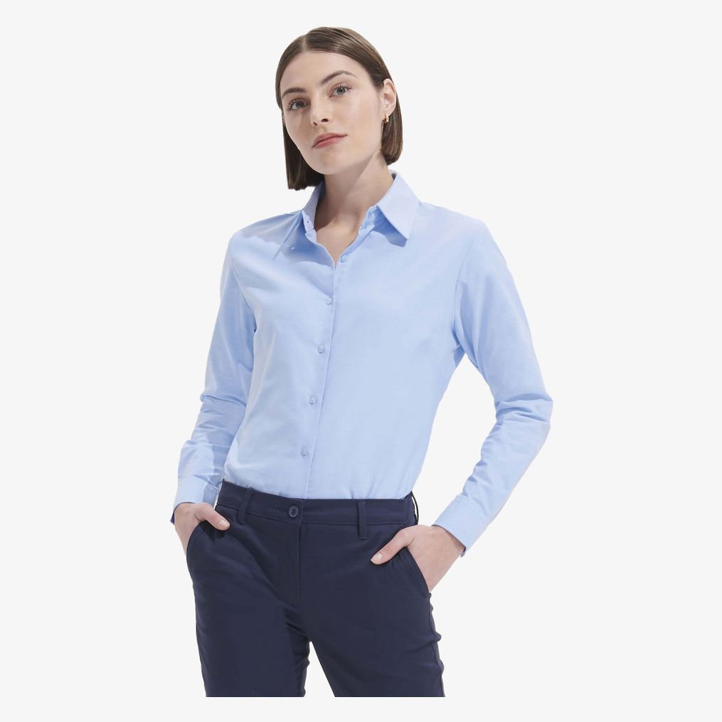 La chemise Embassy femme Oxford manches longues convient aux usages professionnels et au quotidien. Col classique, pinces poitrine et poignets ajustables arrondis.