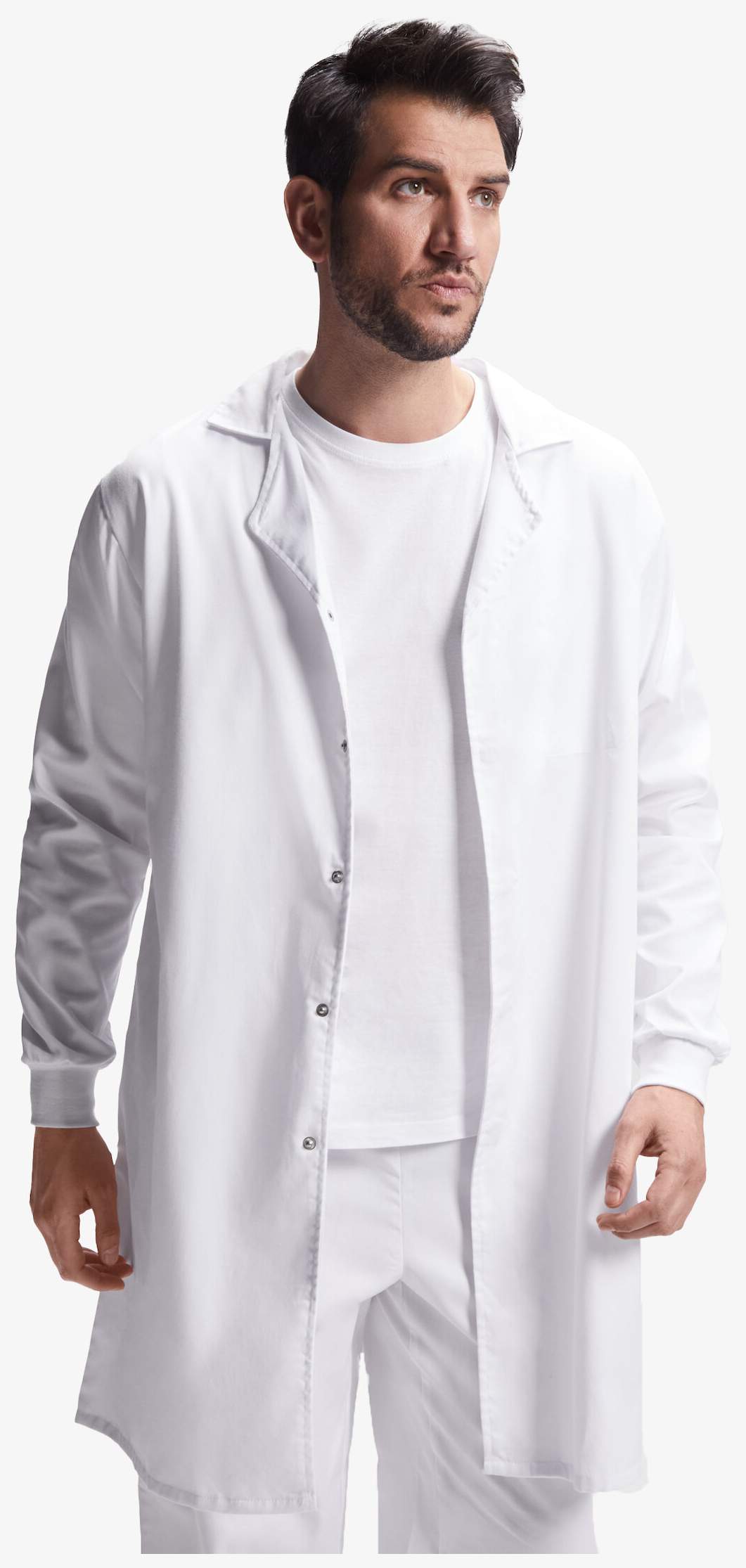 La blouse tunique unisexe à manches longues dispose de poignets côtelés 1x1 réglables et d'une ouverture centrale avec boutons automatiques à l'intérieur. Elle comprend une poche intérieure sur la poitrine gauche et une étiquette amovible.