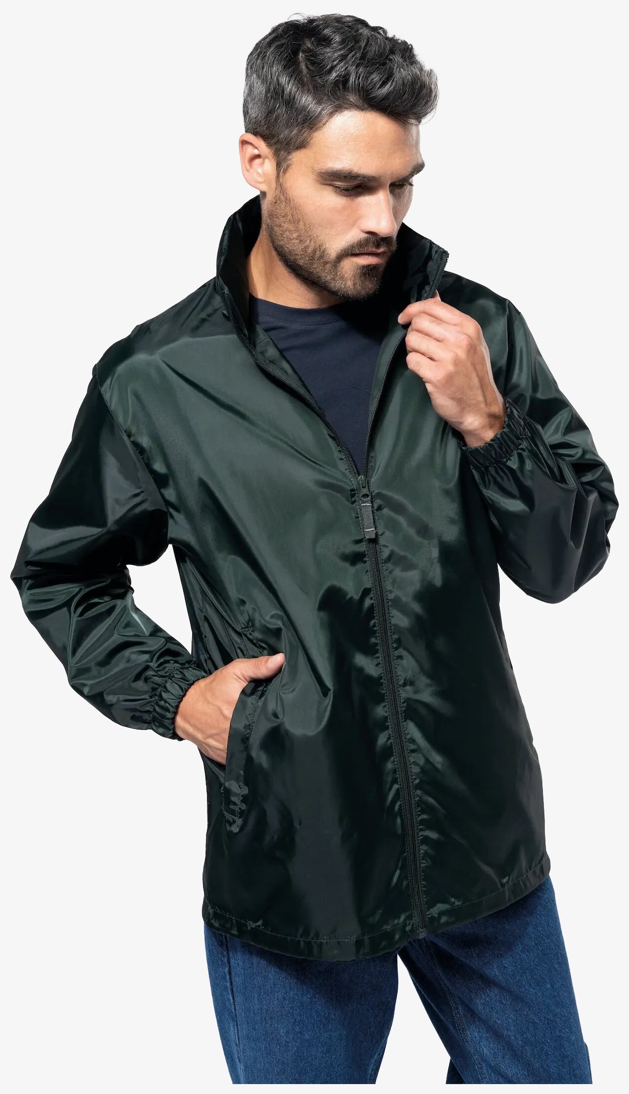 Le Coupe-vent k616 convient aux usages extérieurs courants, avec capuche rangée dans le col et fermeture zippée ton sur ton. Deux poches zippées et un cordon de serrage en bas facilitent l’ajustement. Repliable dans sa poche.