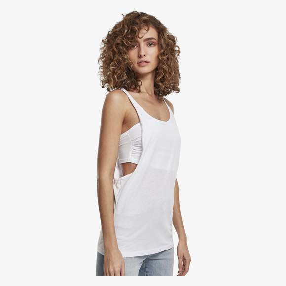 Le Ladies Loose Tank est un débardeur à emmanchures larges avec dos nageur et coupe longue. Certains coloris combinent coton et polyester.