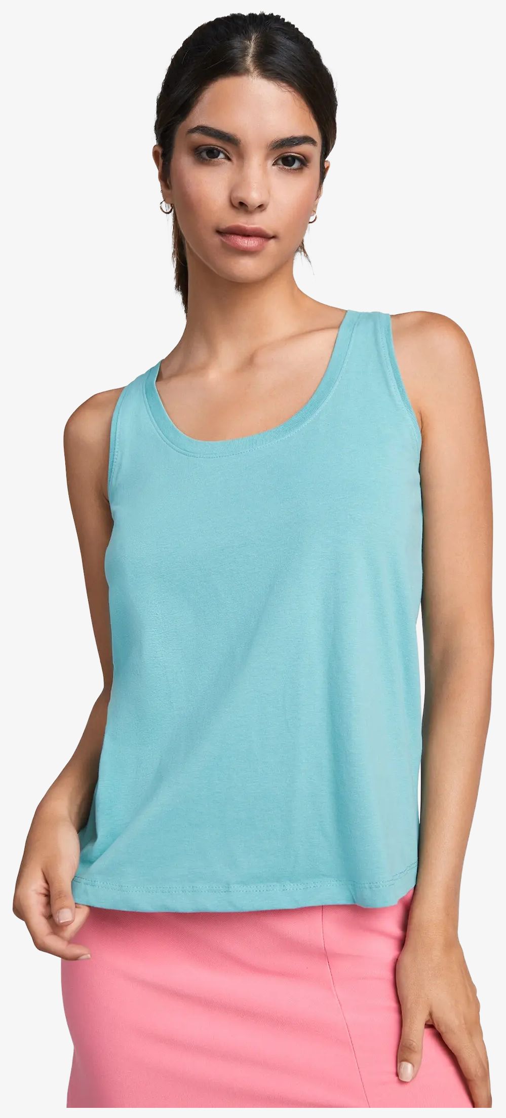 Le débardeur Nara est conçu pour femme avec une coupe ample et des bretelles larges. Il dispose d'une encolure et d'emmanchures en côte 1x1, d'un ourlet arrondi et de coutures latérales. L'étiquette est amovible.