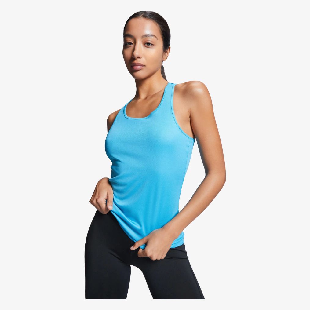 Le débardeur Shura est un tee-shirt technique avec emmanchure encolure bordée d'un liseré et dos nageur avec coutures latérales. Il est conçu en tissu respirant adapté à la sublimation.