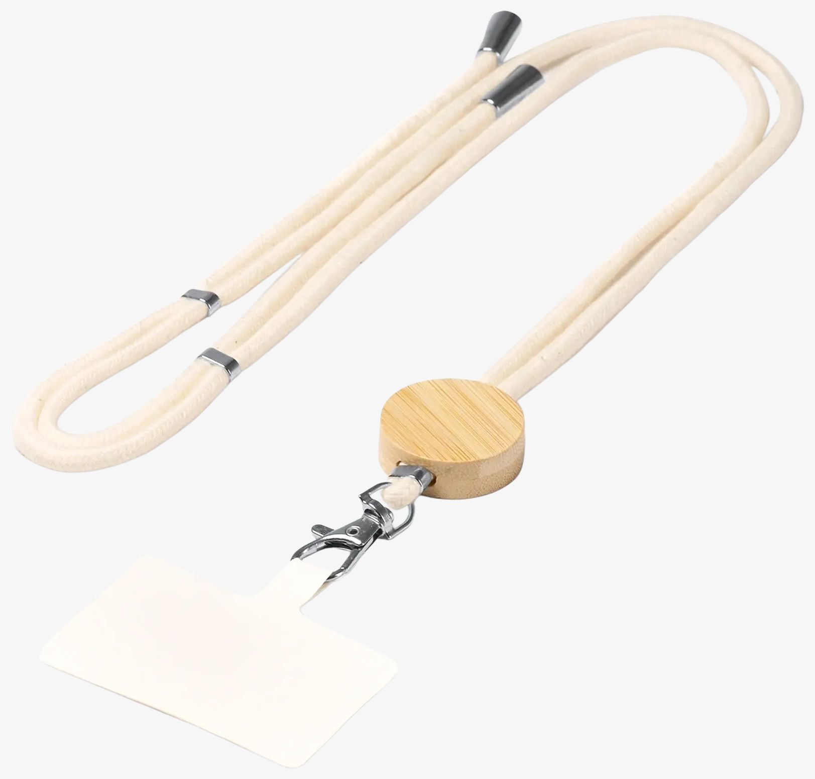 Le cordon téléphone portable est conçu en coton avec un détail en bambou et un système de réglage. Il mesure 80 x 3,2 cm.