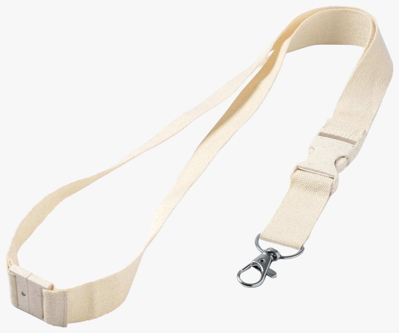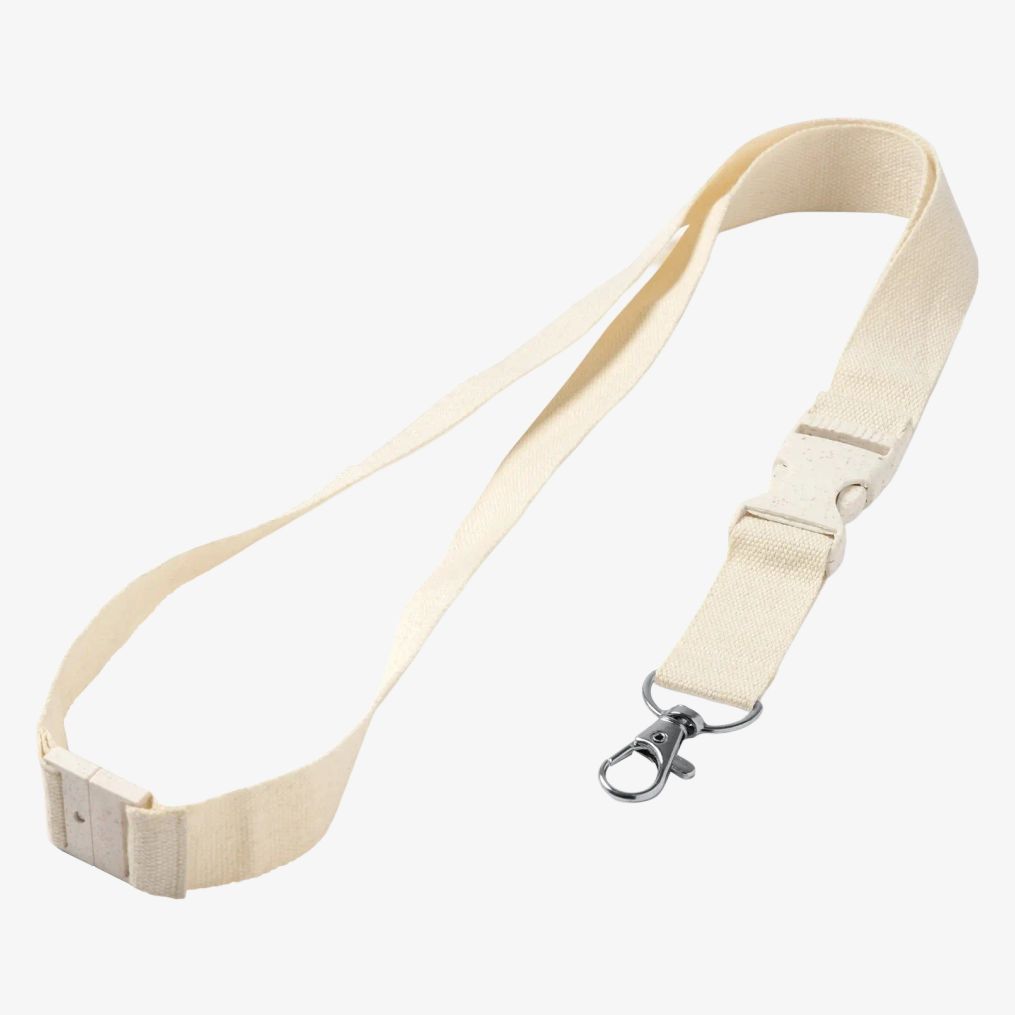 Le cordon coton NELA comprend un mousqueton et une boucle attache sécurité. Il mesure 52 x 2 cm.