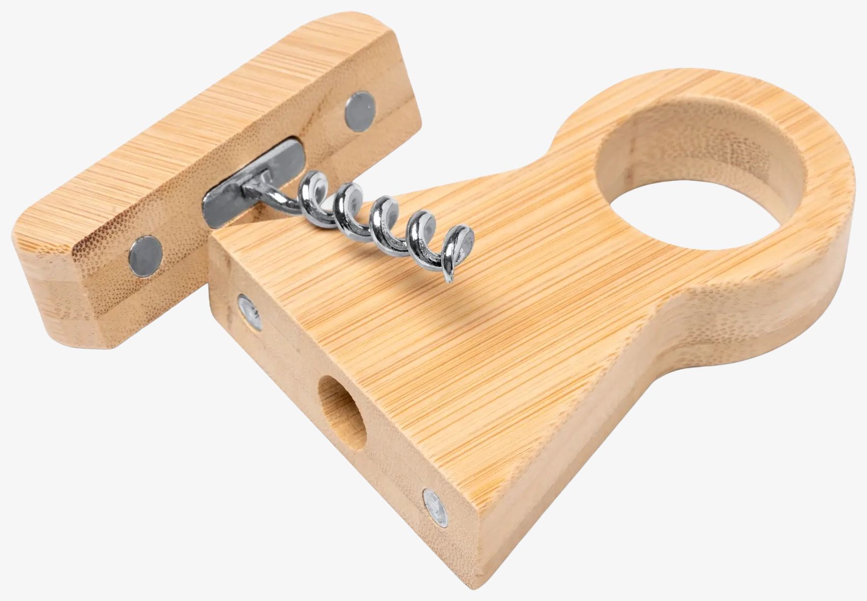 Le KONEN tire bouchon bambou combine une structure en bambou avec un porte-bouteille intégré. Il permet d'ouvrir les bouteilles en offrant une présentation soignée.