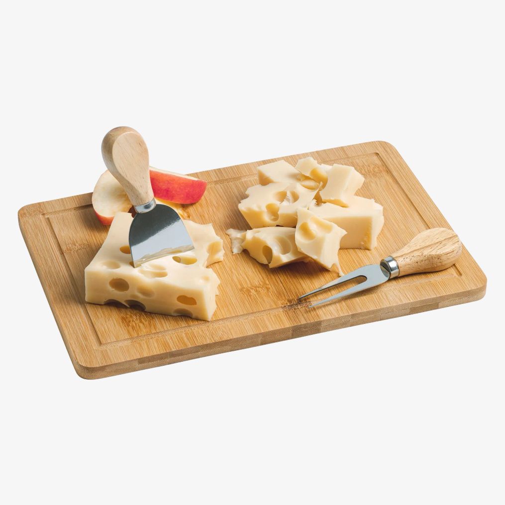 La planche à découper en bambou de forme rectangulaire comprend un profil destiné à recueillir les liquides. Elle offre une surface stable et naturelle adaptée à diverses préparations culinaires.