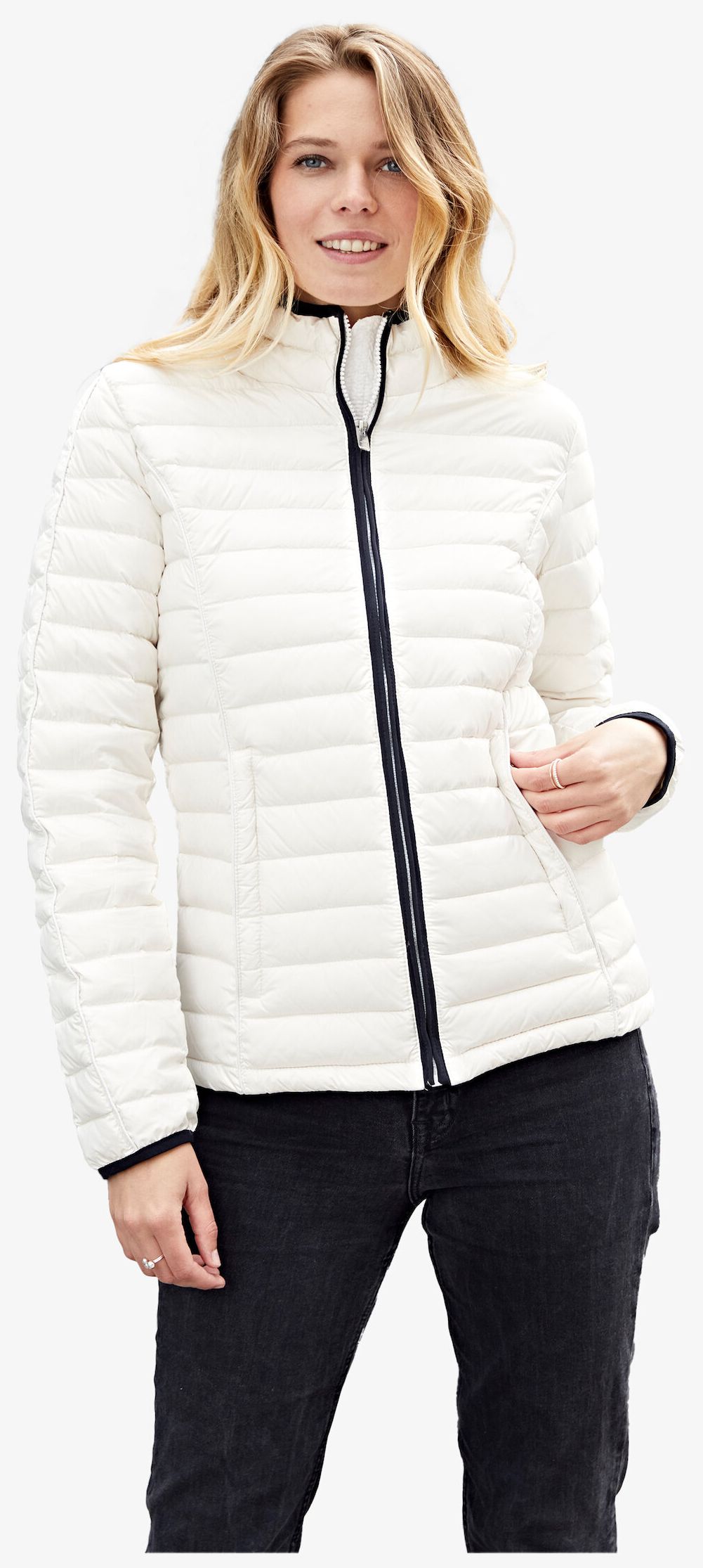 Ourlets contrastés au zip, au col et aux manches