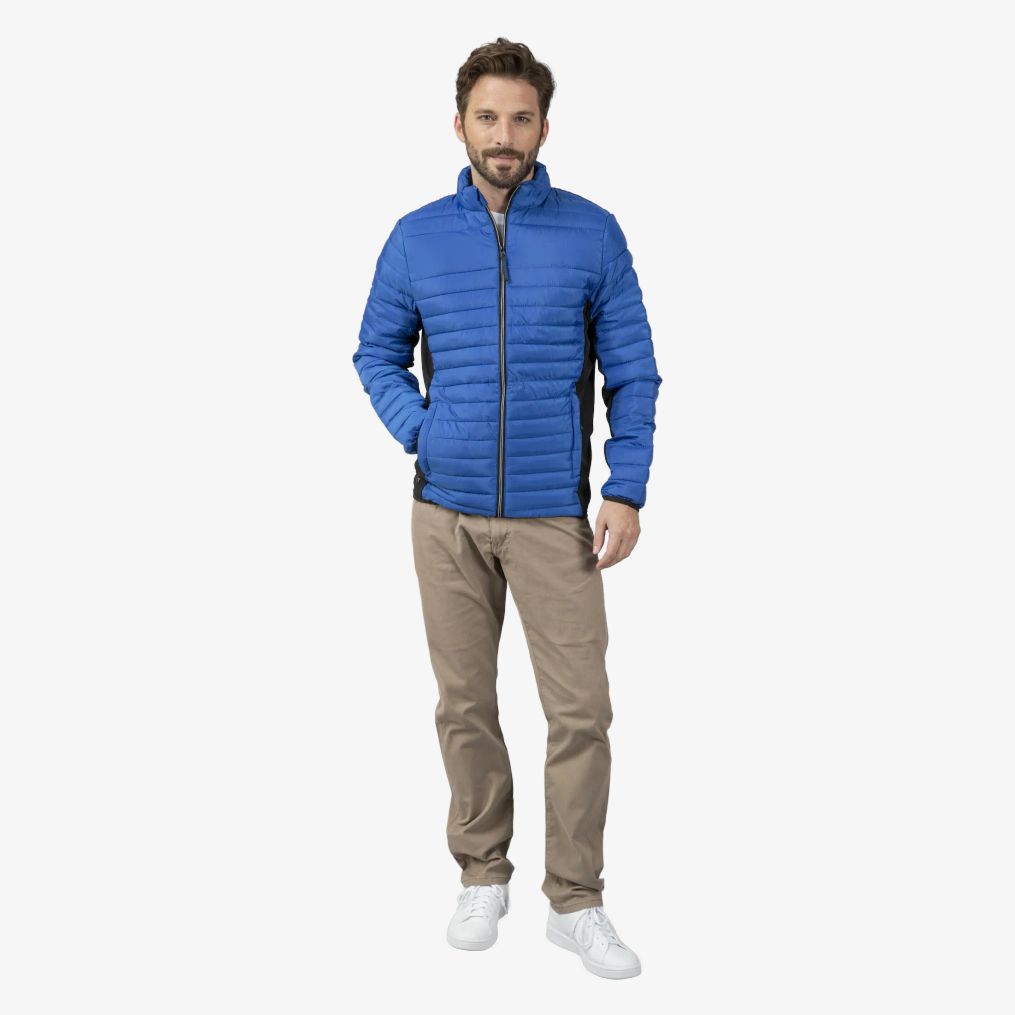 La doudoune légère Boston Men est conçue en polyester avec une coupe ajustée. Elle comporte deux poches latérales zippées et deux poches intérieures. Le col protège le menton et les zips sont contrastés.