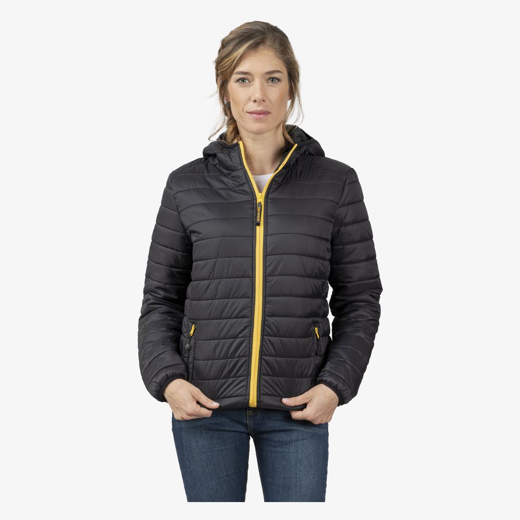 La Pacific Women doudoune légère femme à capuche convient aux usages quotidiens et aux déplacements par temps frais, avec effet coupe-vent, poches extérieures et intérieures, et poignets élastiqués. Extérieur : 100% nylon 15D. Intérieur : 100% polyester taffetas matelassé.
