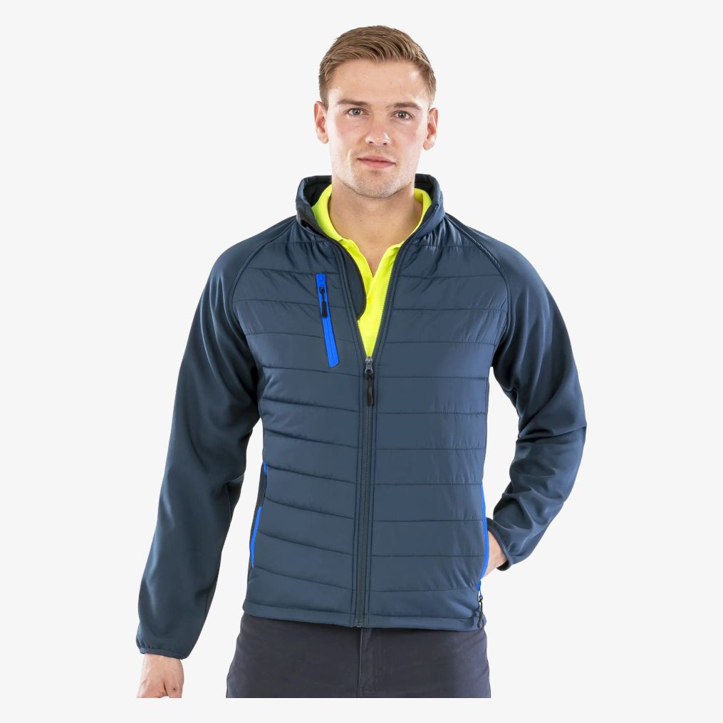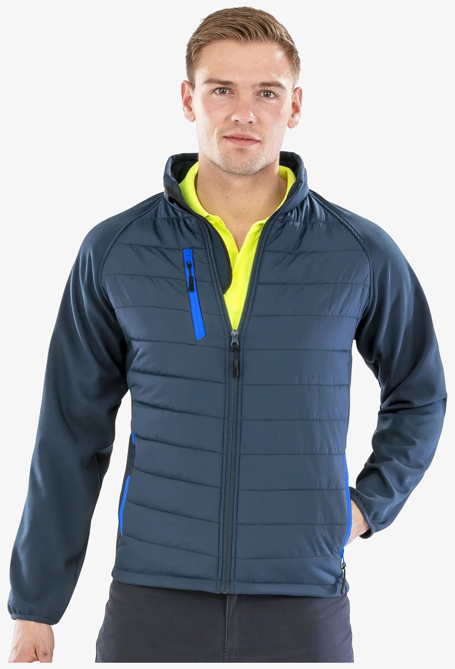 La Compass Softshell Padded est une doudoune bi-matière avec corps matelassé, col montant rembourré, fermeture zippée avec protection menton, poche poitrine zippée et deux poches latérales zippées. Les manches softshell conviennent à un usage quotidien par temps frais.
