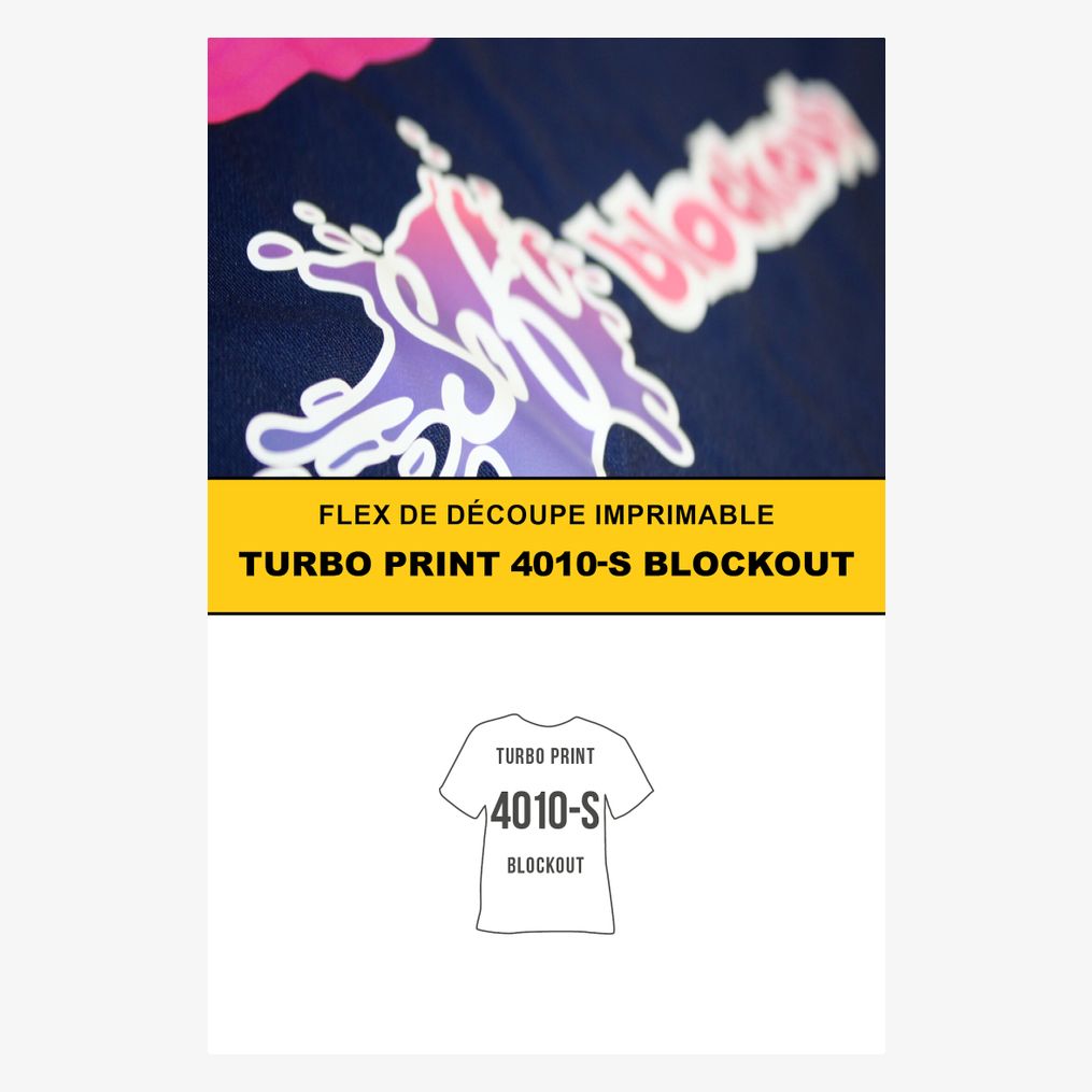 Le Turbo Print 4010-S est un flex imprimable en polyuréthane avec une couche intermédiaire blockout adhésive. Il comprend une colle à chaud polyuréthane et un revêtement en film PET auto-adhésif. Le transfert s'effectue à 130 °C avec une pression moyenne de 2,5 à 3,0 bar durant 5 secondes.