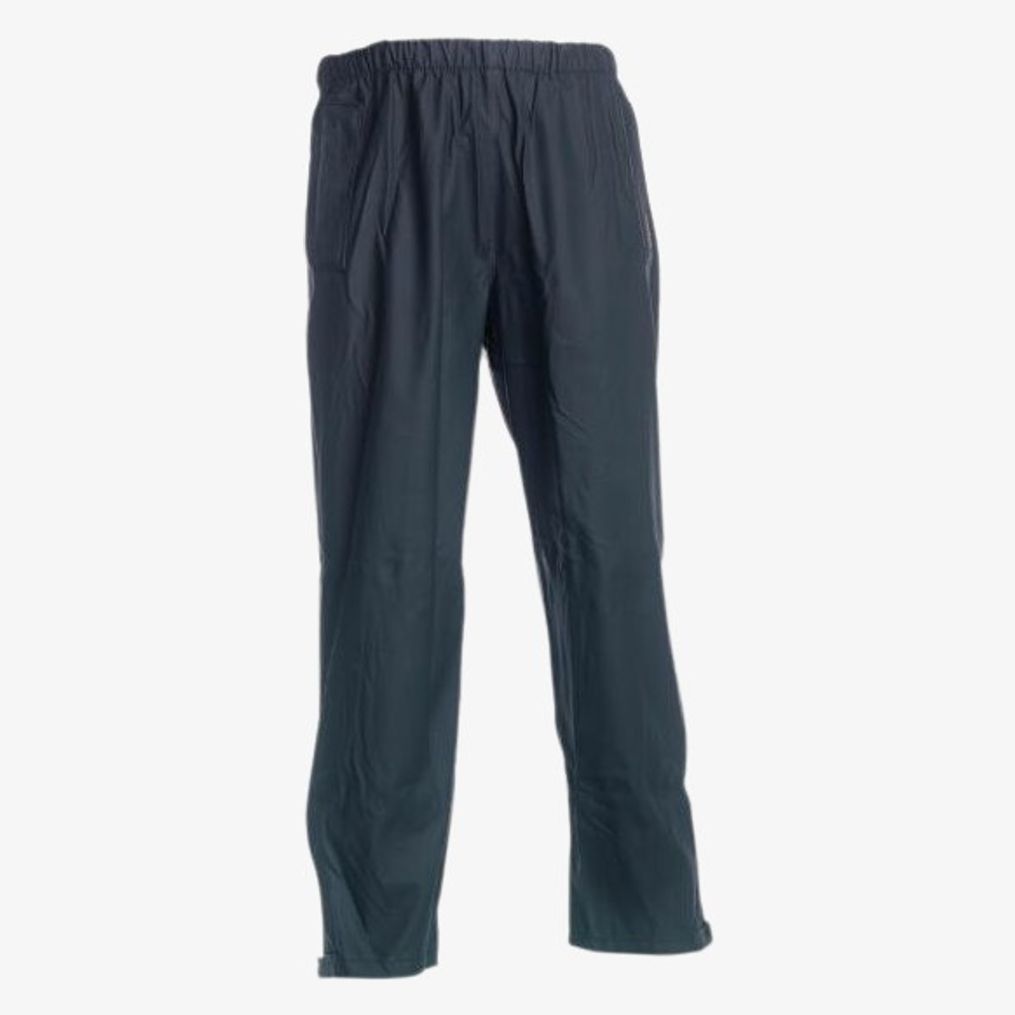Le Pontus - Pantalon pluie convient aux usages par temps humide, avec revêtement PU/PVC en surface et intérieur 100% polyester. Coutures recouvertes, deux poches latérales, taille élastique et bas ajustable.