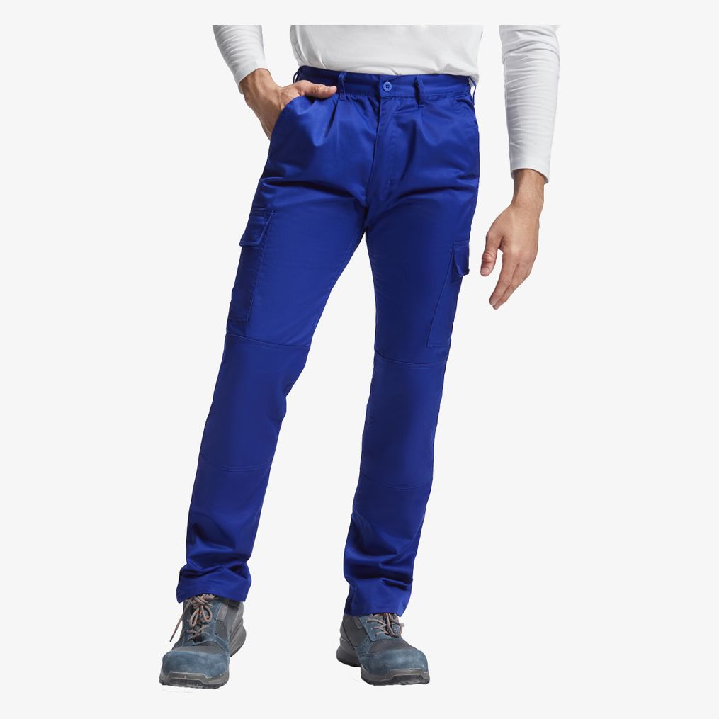 Le Daily pantalon travail coupe droite avec ceinture élastique ajustable à l'arrière. Poches avant, poche arrière à rabat et poches latérales à rabat. Renfort à l'entrejambe et double tissu aux genoux.