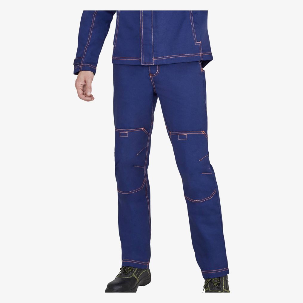 Pantalon unicolore workwear homme. Fermeture à glissière. Passants pour ceinture. Taille semi-élastiquée. Emplacement pour genouillères amovibles. 6 poches ( dont 1 poche latérale outils - 2 poches volantes dos). Passants pressions pour fixer poche amovible Block Pro. Étiquette identité intérieure tissée. 65% polyester - 35% coton. Grammage : 300g/m²