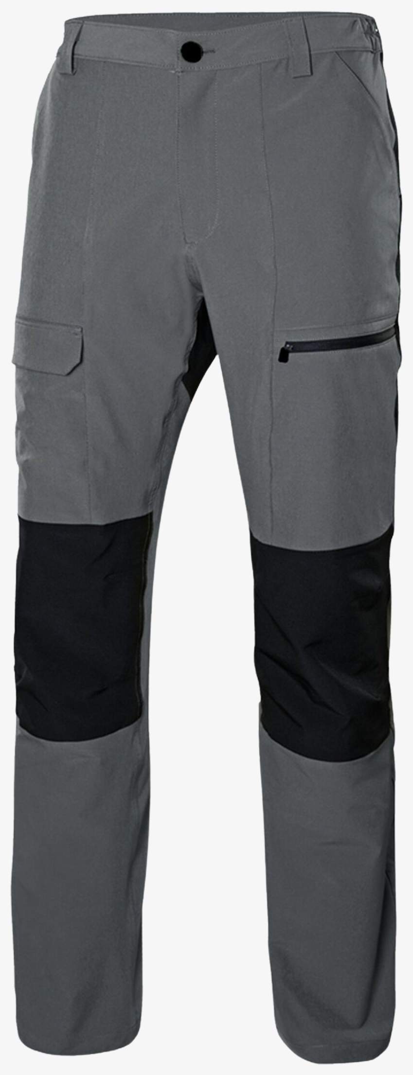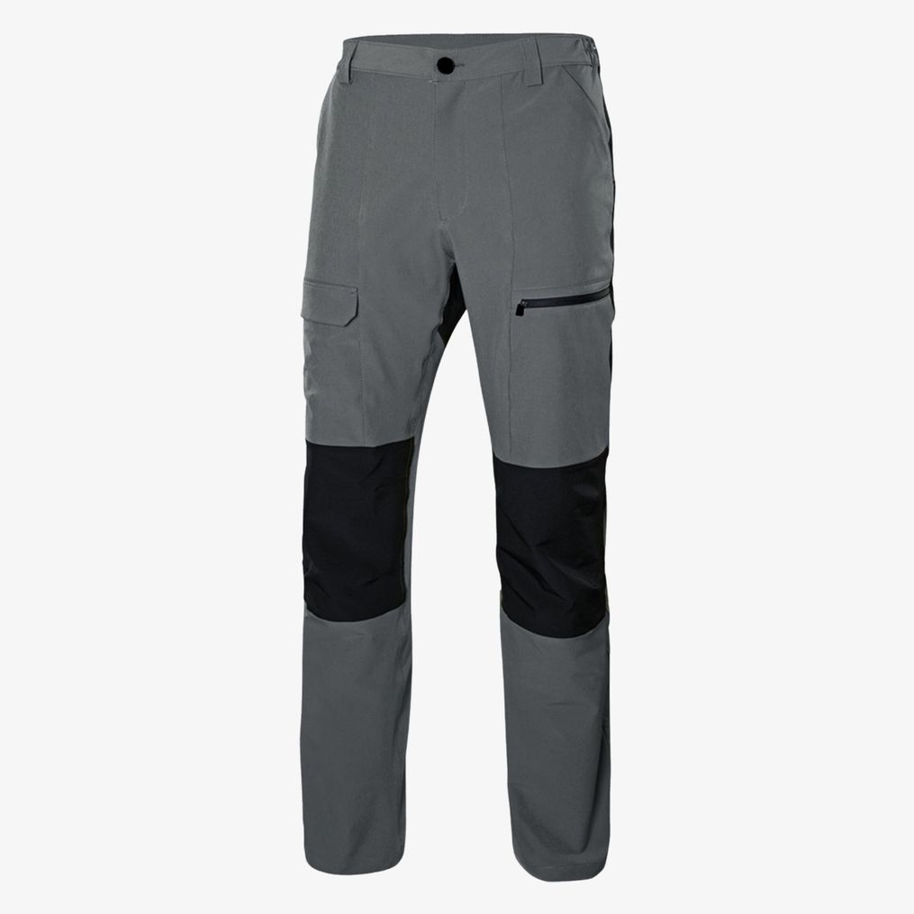 Le pantalon trekking stretch est conçu avec une ceinture élastiquée sur les côtés et une coupe slim. Il comporte une fermeture à bouton avec braguette zippée et des doubles coutures de sécurité. Plusieurs poches sont prévues pour le rangement : deux poches italiennes, une poche avec rabat à bouton pression sur la jambe droite, une poche avec zip inversé sur la jambe gauche, ainsi que deux poches arrière avec zip inversé.